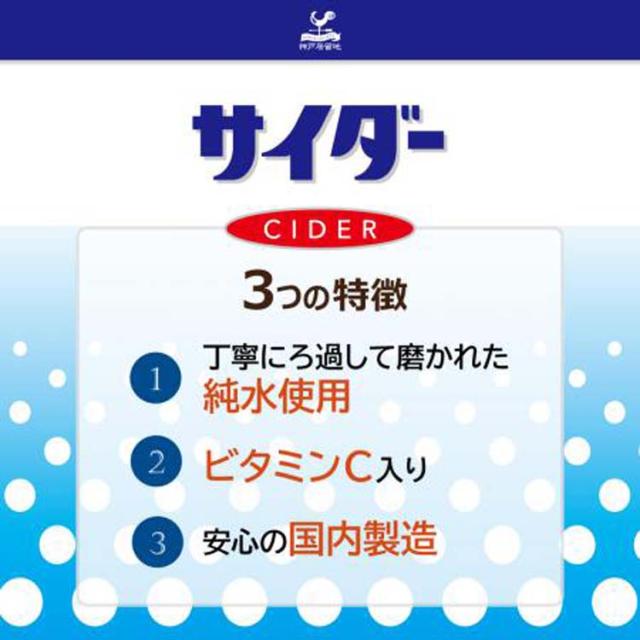 ●シンプルなサイダーだからこそ水にもこだわり、丁寧に濾過を重ねて磨き上げた純水を使用しています。爽快な飲み心地を楽しめる炭酸飲料です。ビタミンC入り。安心の国内製造。
