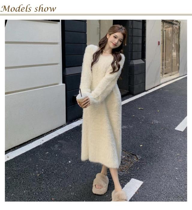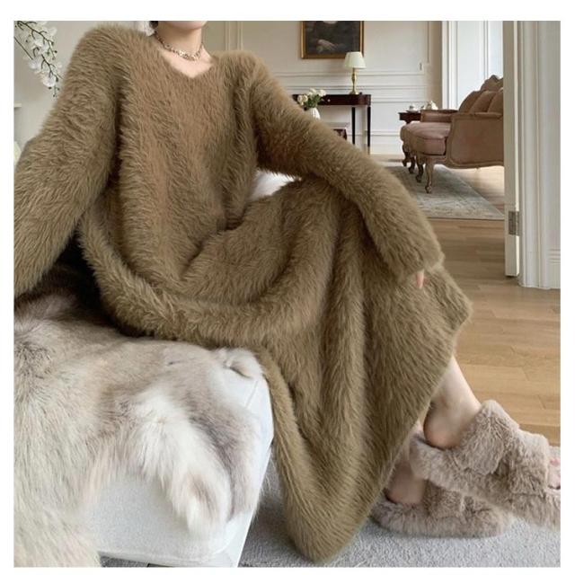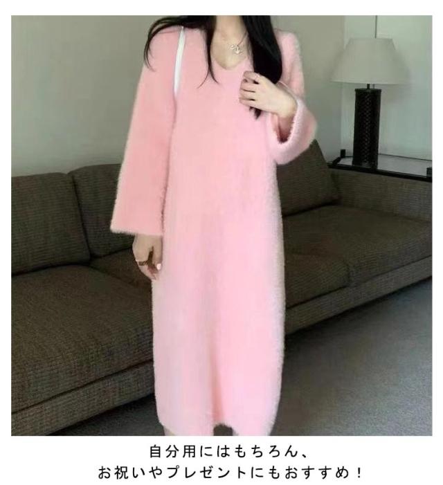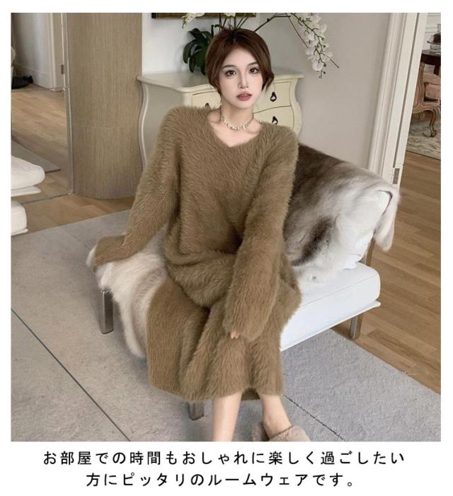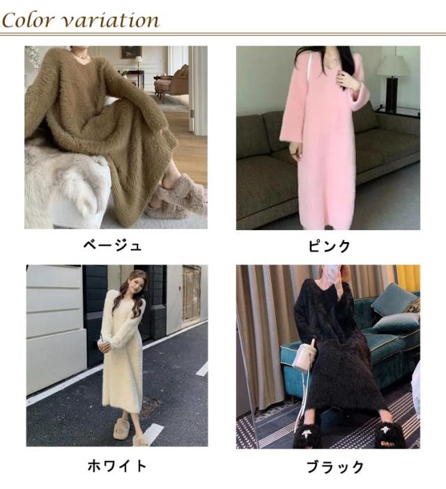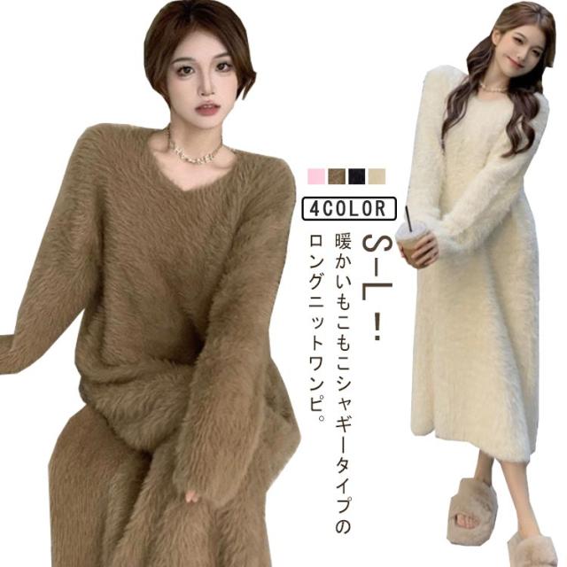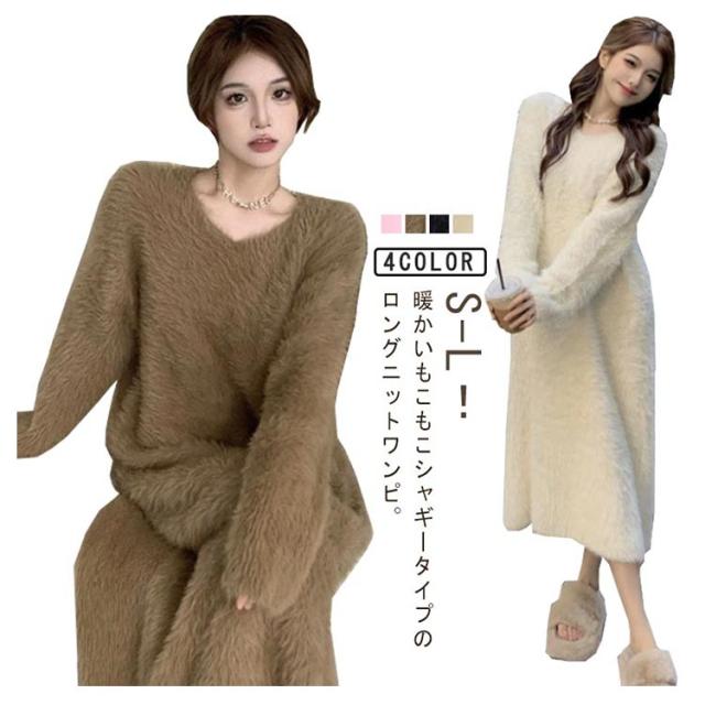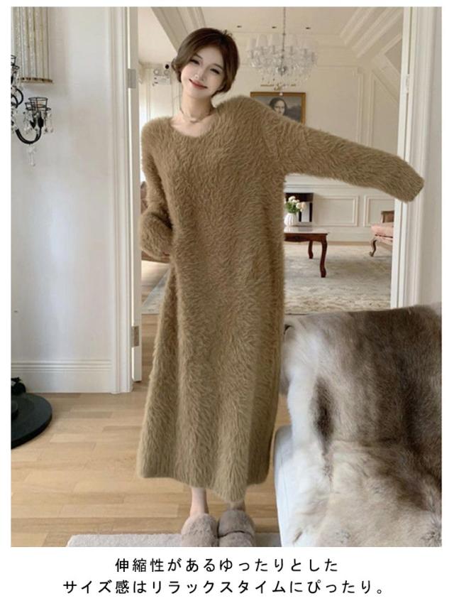大きいサイズ もこもこ ワンピース モコモコ ルームウェア シャギー ロング丈 冬 ルームウェア ふわふわ ロングワンピース マキシ丈 ストレッチ 秋冬ニット 膝下丈 シャギーニット マキシワンピース ワンピース 長袖 秋 冬 体型カバー 暖かい 部屋着 S M L