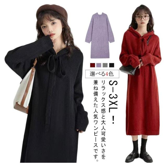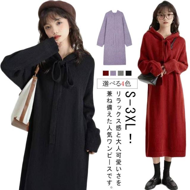 ロング 長袖 マキシ 厚手 ワンピース ルームウェア 無地 50代 ロングワンピース 30代 大人 秋 冬 ニットワンピース 膝下 40代 ニットワンピース 防寒 セーター あったかい レディース セーター 秋冬 暖かい 体型カバー マタニティ 着痩せ カジュアル お洒落