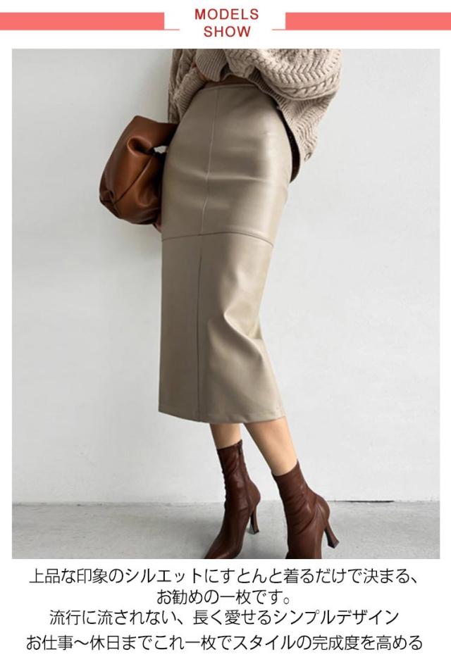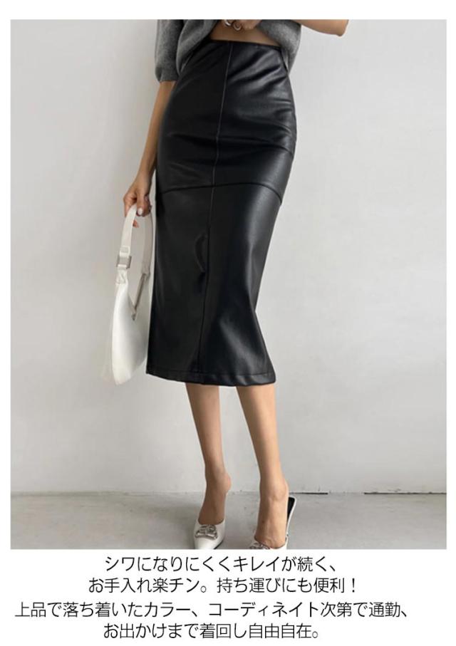 タイト エレガント レザースカート 脚長 大人女性 レザー ロング丈スカート タイトスカート スカート 秋冬 ロングスカート フェイクレザー 上品 ロングスカート オフィス ハイウエスト スリット入り 美脚 着?せ 通勤 ボトムス きれいめ