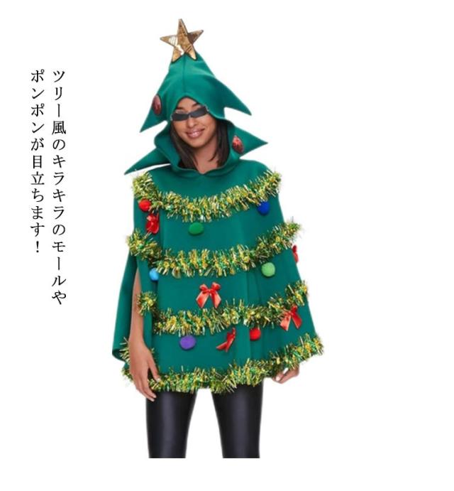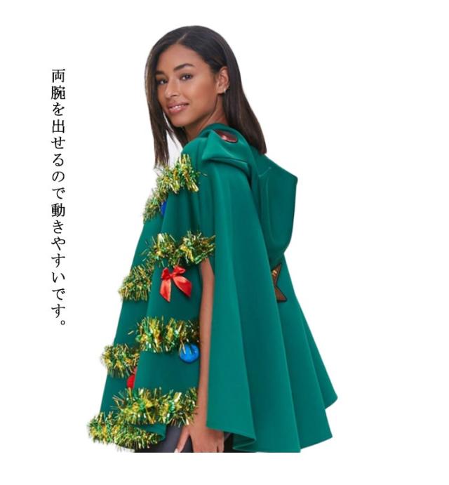 | 【S M L XL 2XL】サッとかぶるだけで大変身! クリスマスツリーの着ぐるみは、パーティでみんなの人気者間違いなし。 両腕を出せるので動きやすいです。 簡易仮装で、気軽に着用できるマントタイプのコスチューム。 ツリー風のキラキラのモールやポンポンが目立ちます! | |