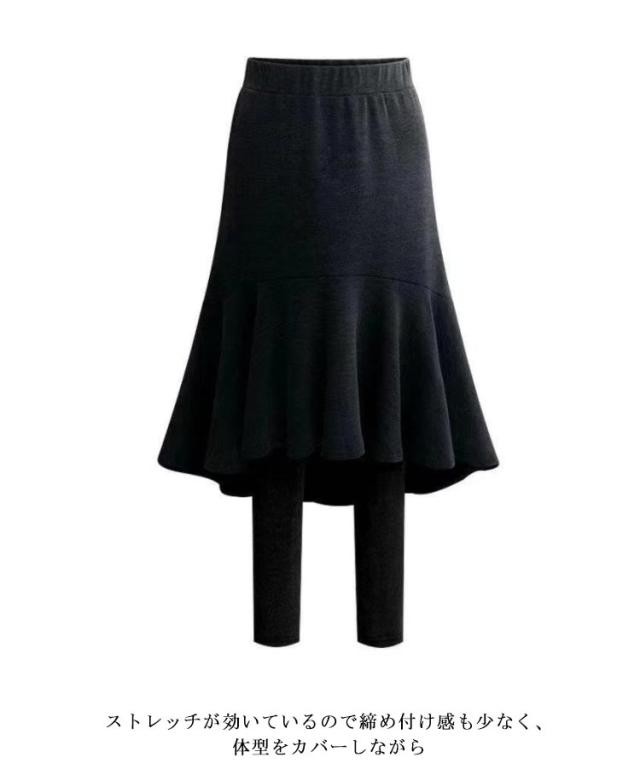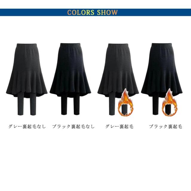 スカートレギンス 防寒 フレアスカート スカートレギンス 膝下丈 タイツ 大きいサイズ スカート付きレギンス 重ね着風 スカート付きレギンス あったか 冬 レギンス ウエストゴム 黒 グレー 秋 レギパン 暖かい 裏起毛レギンス レギパン レギンス パンツ
