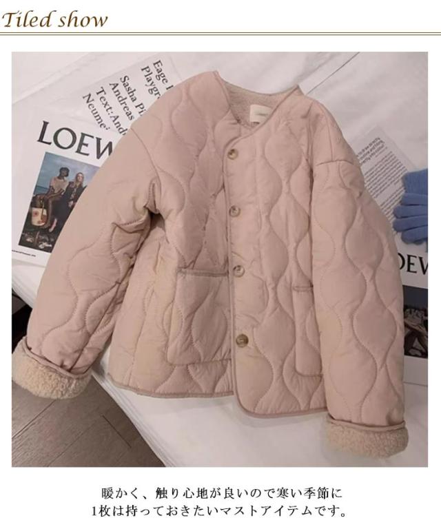 ジャケット レディース ノーカラー 秋冬 裏起毛 キルティング ジャケット インナージャケット 裏ファー コート ノーカラー ジャケット レディース アウター あったか 暖かい 羽織り 上着 柔らかい シンプル もこもこ ゆったり 冬 真冬 カジュアル 送料無料