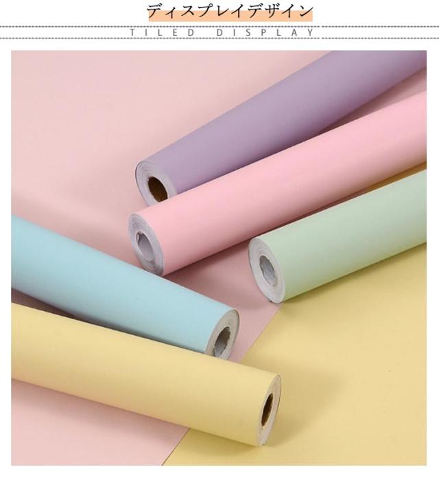 | マットな質感 壁紙 幅45cm×長さ10m 17色選べる 台紙を剥がして貼るだけの簡単リメイクシート 賃貸の壁紙に直接貼れるので気軽にDIYが可能 防水にも優れ光沢のある素材なのでキッチン等の水回りのイメージチェンジに最適です ■貼り付け方 貼り付けたい箇所のサイズにあわせてシートをカットします。 貼り付けたい箇所をきれいにします。塵や埃のないよう拭き上げてください。 台紙からシートを少し剥がし、端から少しずつ貼り付けていきます。スキージーをお使いいただくとスムーズに貼り付け頂けます。 空気が残らないように全体をならして完成です。 ■用途 平らな壁、木製の表面、金属表面、タイル表面、ガラス表面、プラスチック表面 ※下記素材には貼り付きません 凹凸のある壁紙表面、ザラザラしている表面、不均一な表面 (砂壁、土壁、エンボス加工の壁紙等) | |