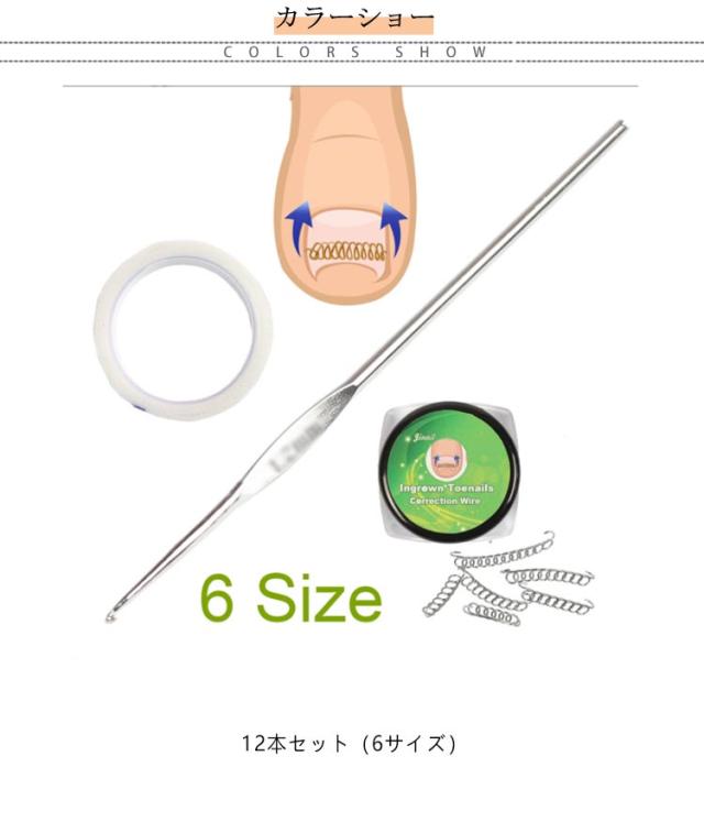 | 痛くない巻き爪 自宅で巻き爪矯正 12本セット 固定用テープ+つけ具付き 自分で巻き爪のセルフ矯正!痛い巻き爪のお悩みに 加工不要の巻き爪・陥入爪の矯正器具ですぐに使えます。 普通・軽度巻き爪・中等巻き爪・重度巻き爪・片側巻き爪など、すべてのタイプの巻き爪に使用可能。 ●シャワー可能/移動可能 日常生活に支障をきたさない ●洗えるので、いつでも清潔に保てます! ●繰り返し使えて経済的、手入れも簡単! 【使用方法】 STEP1 爪の状態を確認 フックをかけやすくするため、爪の形を整えます。 ※腫れ、出血、爪水虫などがある場合はご使用を控え、 病院などで治療を行ってください。 STEP2 適用サイスを選択 サイズが6種類ありますのでご自分の爪の幅に 合ったサイズをお選びください。 STEP3 爪と肉の間にチェーンワイヤーを入れる STEP4 位置を確認 STEP5 テープで固定 | |