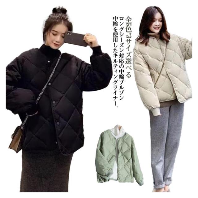 キルティングライナー コート 秋 アウター 冬 ジャケット コート 防寒 キルティングジャケット キルティングライナー 中綿 ノーカラージャケット カーディガン カジュアル シンプル おしゃれ 秋 軽い 暖かい 防寒着 キルティングライナー 冬