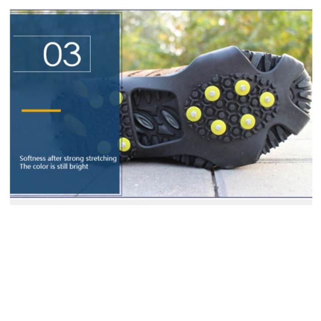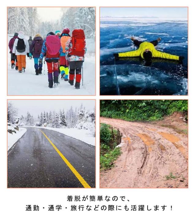 | 急な降雪時に使用できる着脱式の左右兼用スパイクです。 前半部分は6つのピン、後半部分は4つのピン、雪上で滑りづらくて安心して歩けます。 高品質なTPE材質で、極低温でも硬化しにくく、問題なくご使用可能です。 軽くて耐久性があり、非常に弾力性のある材料で作られています。 装着はつま先とかかとにひっかけるだけで完了です。 軽くて薄くて小さいので持ち運びにも便利です。 着脱が簡単なので、通勤・通学・旅行などの際にも活躍します! | |