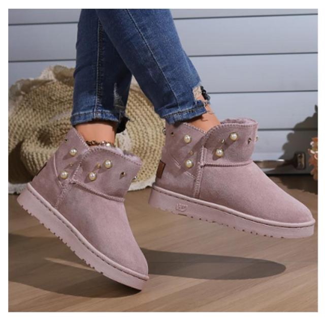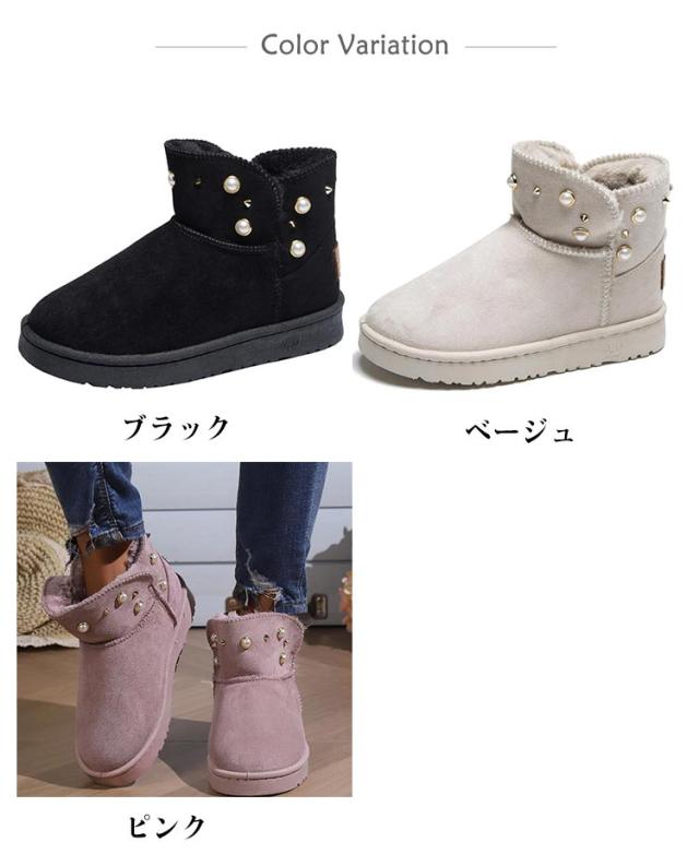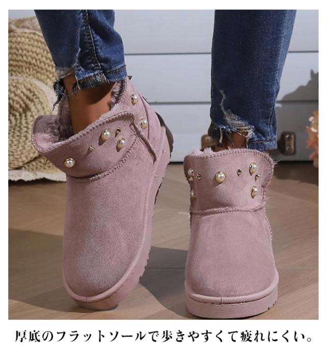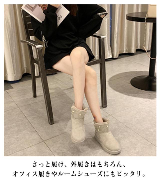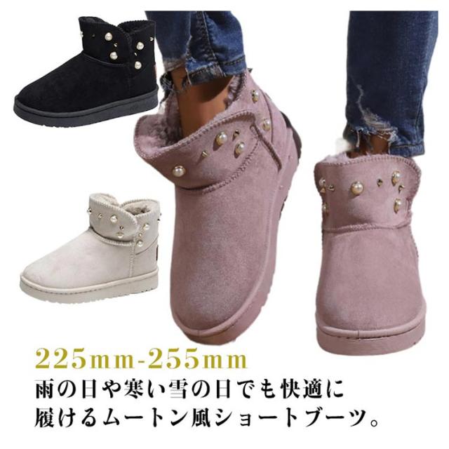 パール スノーブーツ レディース ムートン風 ショートブーツ 送料無料 厚底 フラットブーツ フェイクムートン ブーツ 防寒 保温 スノーシューズ スリッポン式 履きやすい 裏ボア 防寒靴 冬用 女性用 かわいい