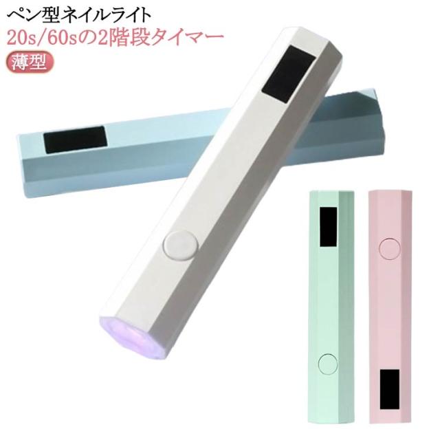 ネイルライト ペン型 LEDライト ライト充電式 ネイル コードレス uvライト ミニネイルライト Mini UV ペン型 3W ネイルライト ジェルネイル LED ネイルライト 小型 ネイルライト UVライト 20s/60sの2階段タイマー 手足両用