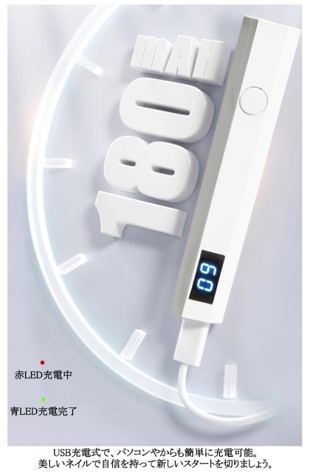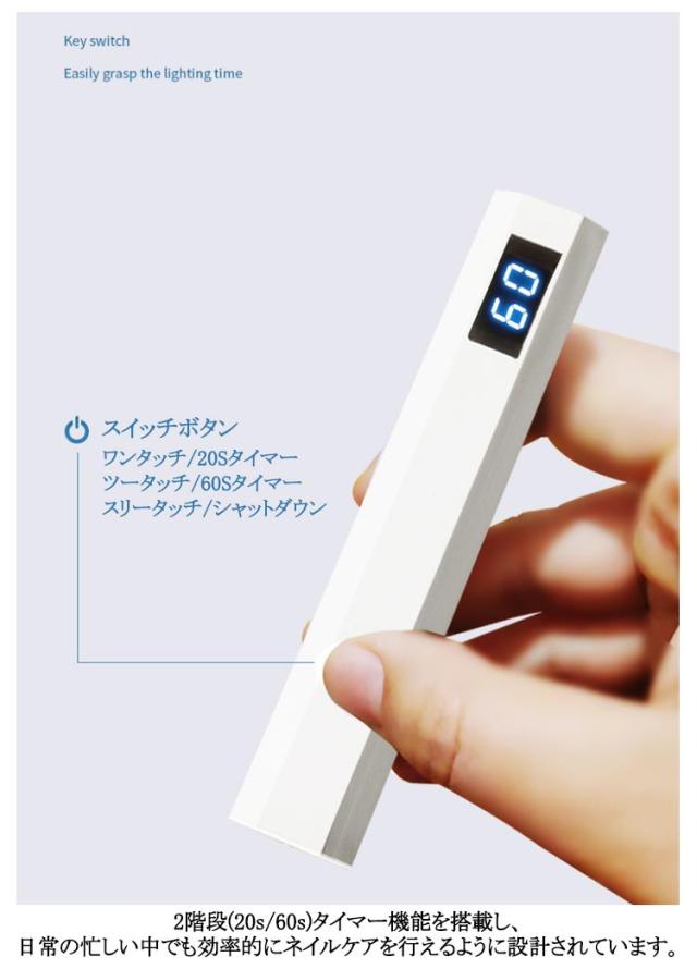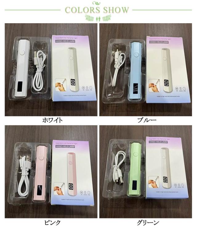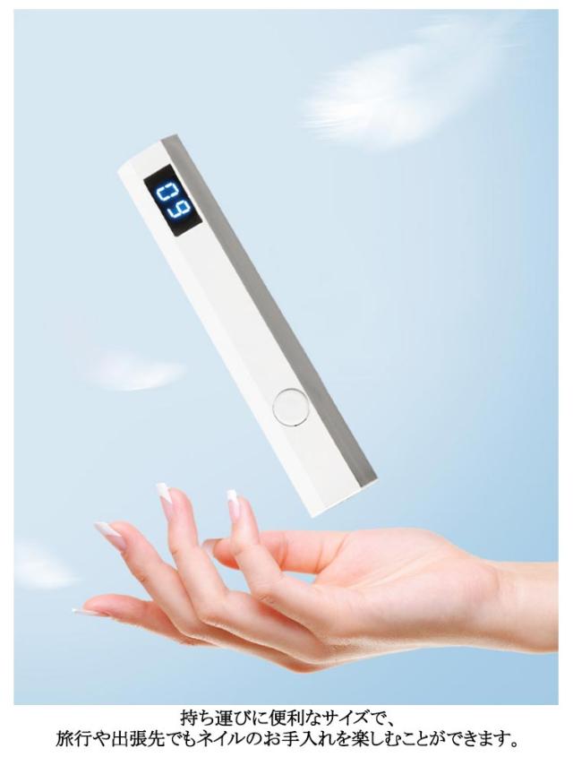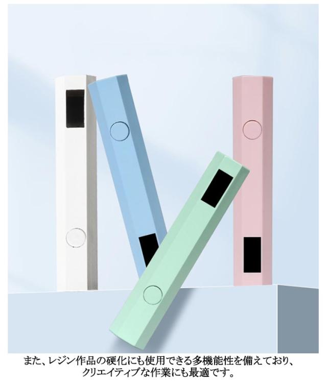 | ペン型ネイルライト 20s/60sの2階段タイマー このペン型のLED&UVネイルライトは、わずか3Wの省エネ設計ながら、ジェルネイルの硬化に必要なパワーをしっかりと提供。 充電式(type-c usb)でコンパクトながら、手足両用に対応し、どこでも簡単にネイルケアが可能です。 2階段(20s/60s)タイマー機能を搭載し、日常の忙しい中でも効率的にネイルケアを行えるように設計されています。 また、レジン作品の硬化にも使用できる多機能性を備えており、クリエイティブな作業にも最適です。 持ち運びに便利なサイズで、旅行や出張先でもネイルのお手入れを楽しむことができます。 USB充電式で、パソコンやからも簡単に充電可能。美しいネイルで自信を持って新しいスタートを切りましょう。 | |