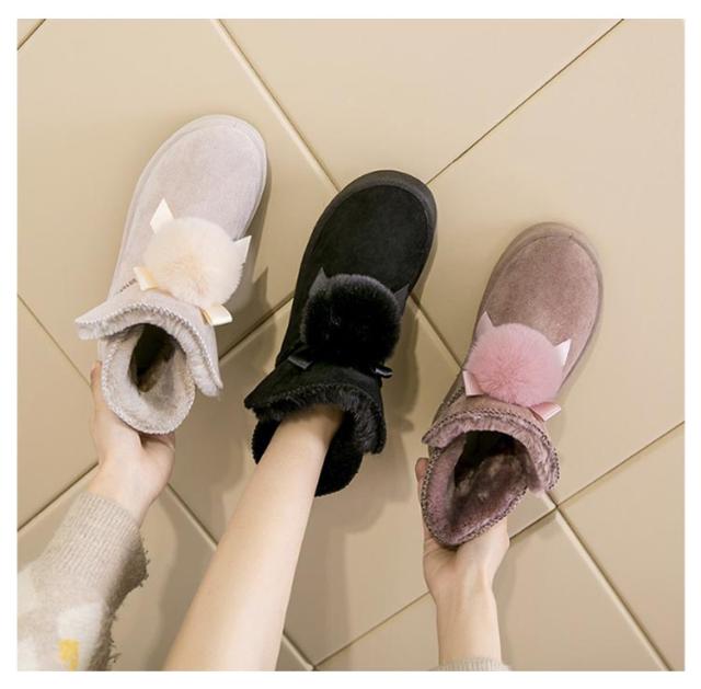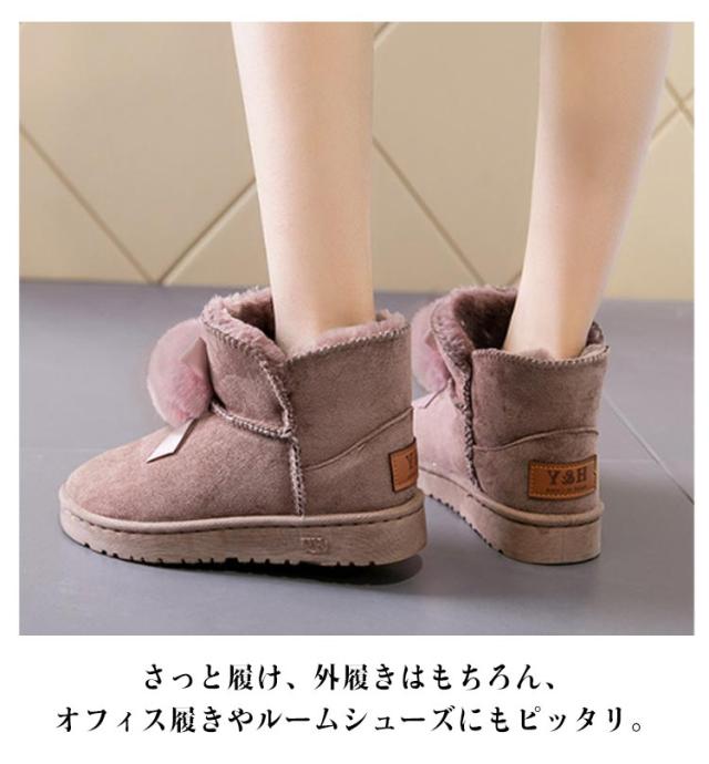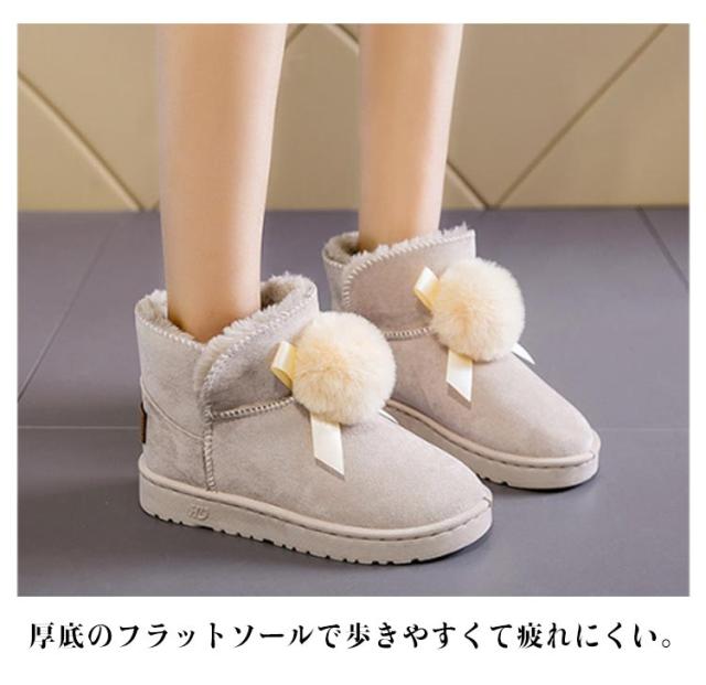 可愛い ショートブーツ 厚底 スノーブーツ 送料無料 レディース ムートン風 フラットブーツ フェイクムートン ブーツ 防寒 保温 スノーシューズ スリッポン式 履きやすい 裏ボア 防寒靴 ファー付き 冬用 女性用 かわいい