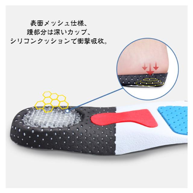 | スポーツインソール 高反発エアクッション カットフリー 筋力サポートの強い運動用インナーソールです。 表面メッシュ仕様、踵部分は深いカップ、シリコンクッションで衝撃吸收。 人体工学により安定性能アップします。 | |