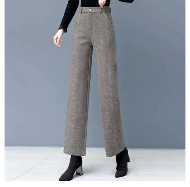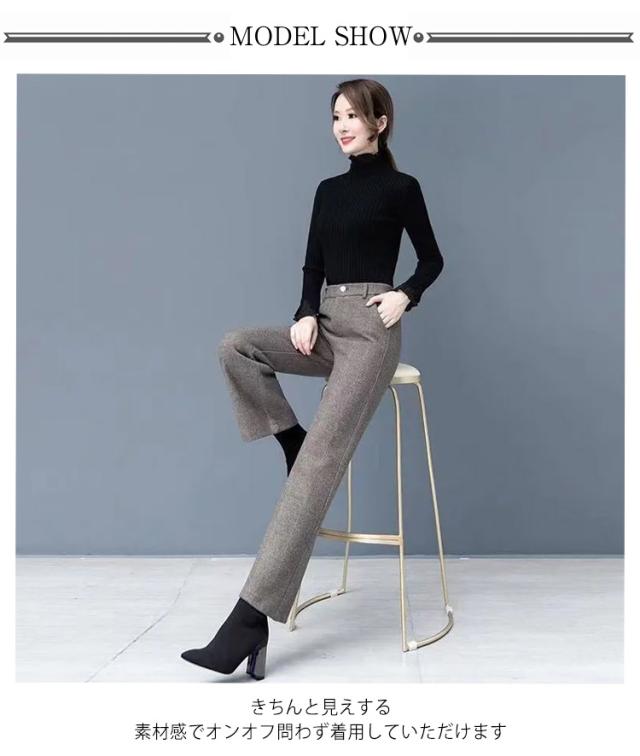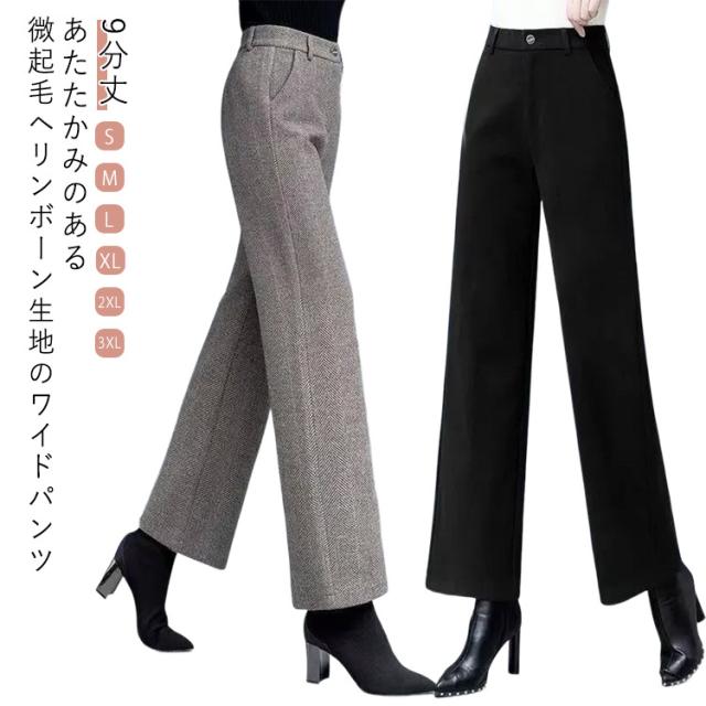 ヘリンボーン ワイドパンツ 9分丈 レディース 微起毛 ボトムス あったか 暖かい ロングパンツ 秋冬 厚手 ヘリンボーン柄 ゆったり 防寒 長ズボン 体型カバー ポケット付き 後ろゴム 通勤 オフィス ビジネス 送料無料