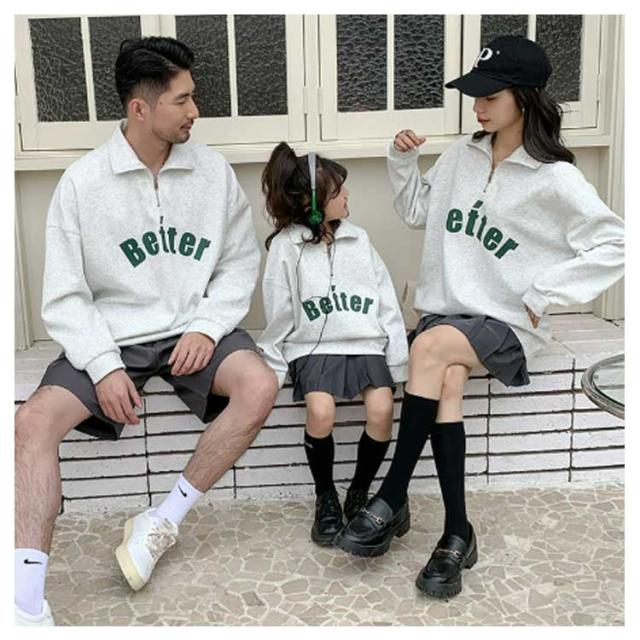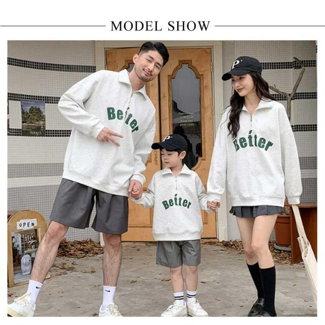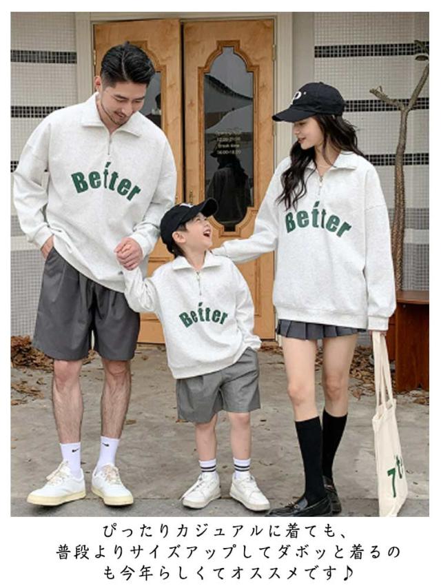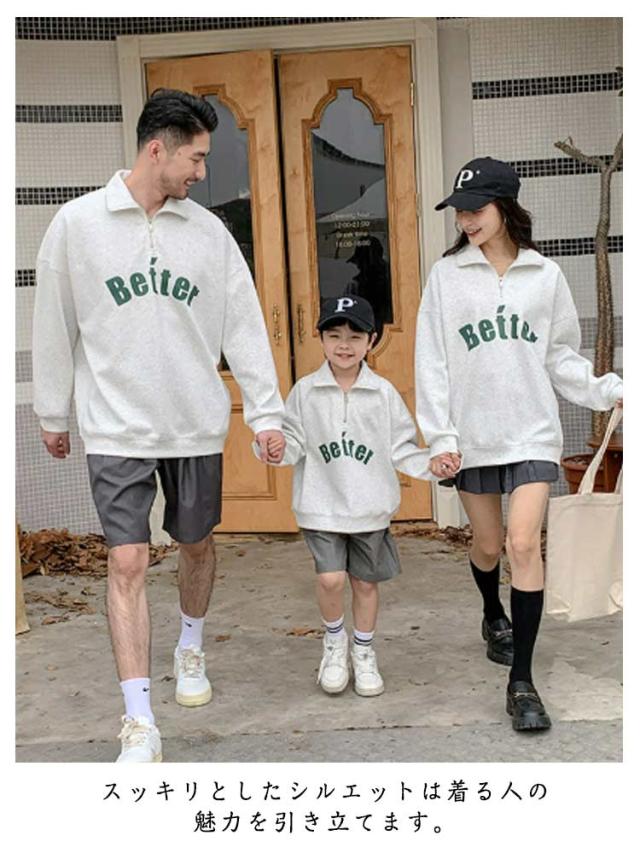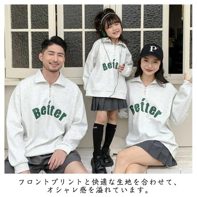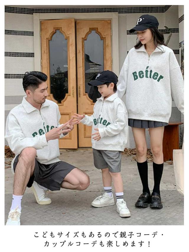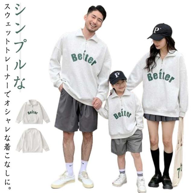 スウェット スタンドカラー 長袖 親子 親子 トップス 親子 ペアパーカー プルオーバー ハーフジップ ペアルック パーカー 折り襟 親子ペアルック 2way 親子パーカー 家族お揃い 親子お揃い 長袖 プレゼント キッズコーデ