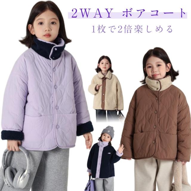 ジャケット リバーシブル ボアコート オシャレ キッズ アウター 中綿ジャケット 韓国子供服 ボアコート ジャケット 子供服 アウター フード付き 女の子 冬服 2WAY 子ども服 もこもこ ふわふわ 可愛い 防寒 あったか 通学 羽織 110-160cm