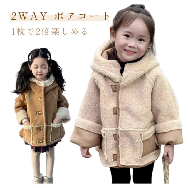 リバーシブル ジャケット 韓国子供服 ボアコート オシャレ キッズ アウター ムートンコート 中綿ジャケット ボアコート ジャケット 子供服 アウター フード付き 女の子 冬服 2WAY 子ども服 ふわふわ 可愛い 防寒 あったか 通学 羽織 95-130cm