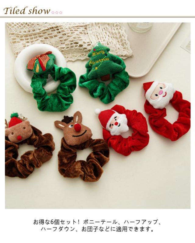 女の子 ぽんぽん シュシュ 6個セット ヘアシュシュ クリスマス ヘアゴム 可愛い トナカイ クリスマスツリー 髪留め クリスマス 髪飾り ヘアーゴム ヘアバンド ヘアアクセサリー かわいい サンタ 幼稚園 小学生 ヘアアレンジ 送料無料 プレゼント ギフト