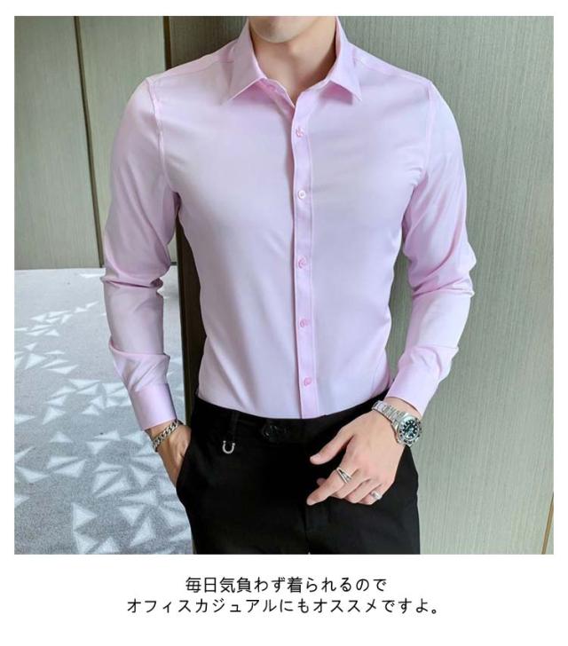 メンズ ホスト しなやか ドレスシャツ ビジネス 光沢感 シャツ ワイシャツ スリム 白 シャツ シャツ 結婚式 パーティー メンズ 黒 ブラック 冷感材質 メンズ ステージ 2次会