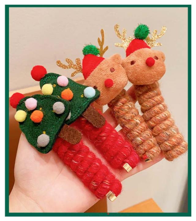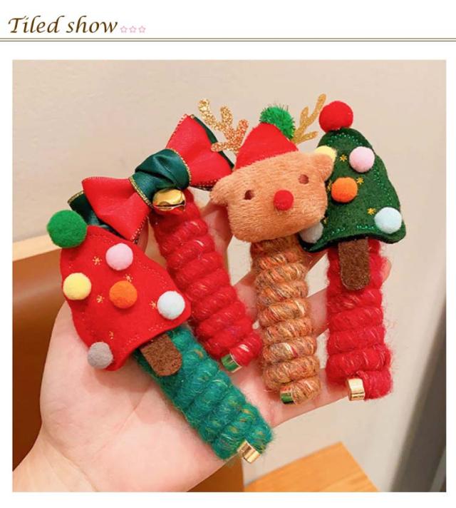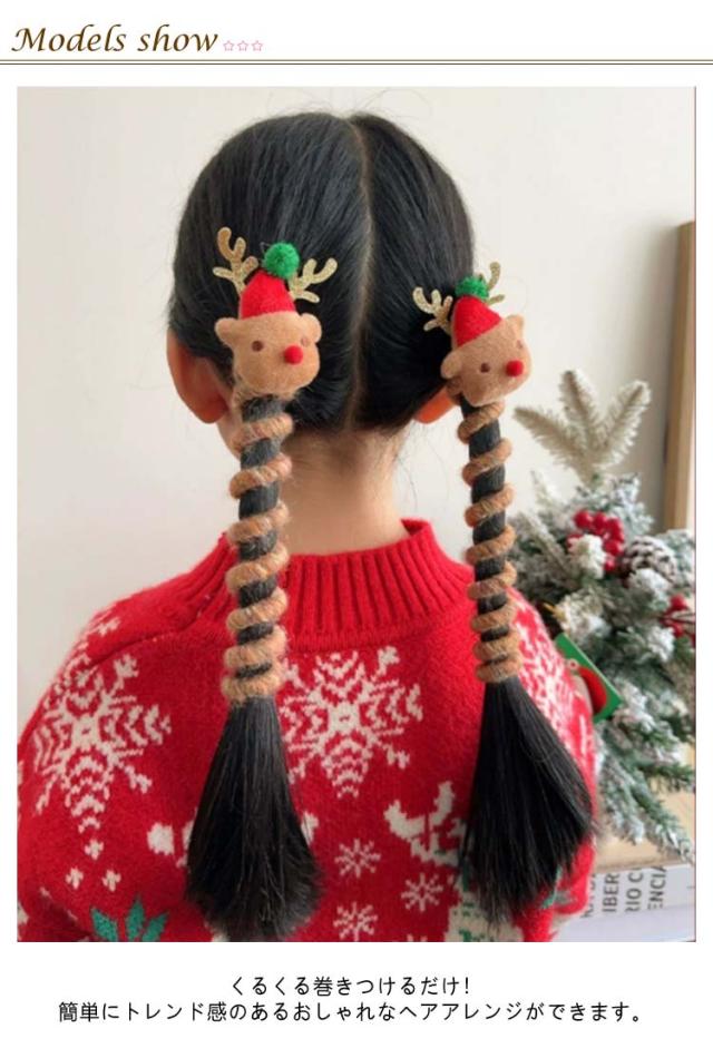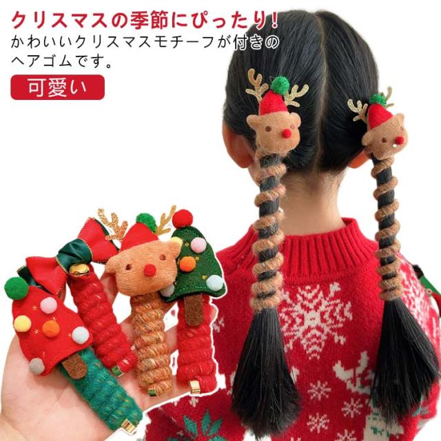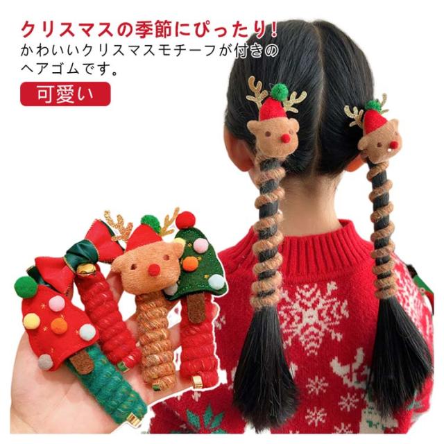 ワイヤーポニー ヘアゴム コイルポニー トナカイ クリスマス アレンジ自在 ヘアアクセ リボン ヘアゴム クリスマスツリー 髪飾り 可愛い 髪留め 紐 小物 コイルアップ ヘアアレンジ簡単 子供 髪ゴム キッズ ヘアアクセサリー 女の子 クリスマス