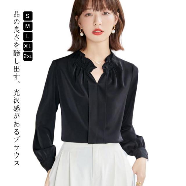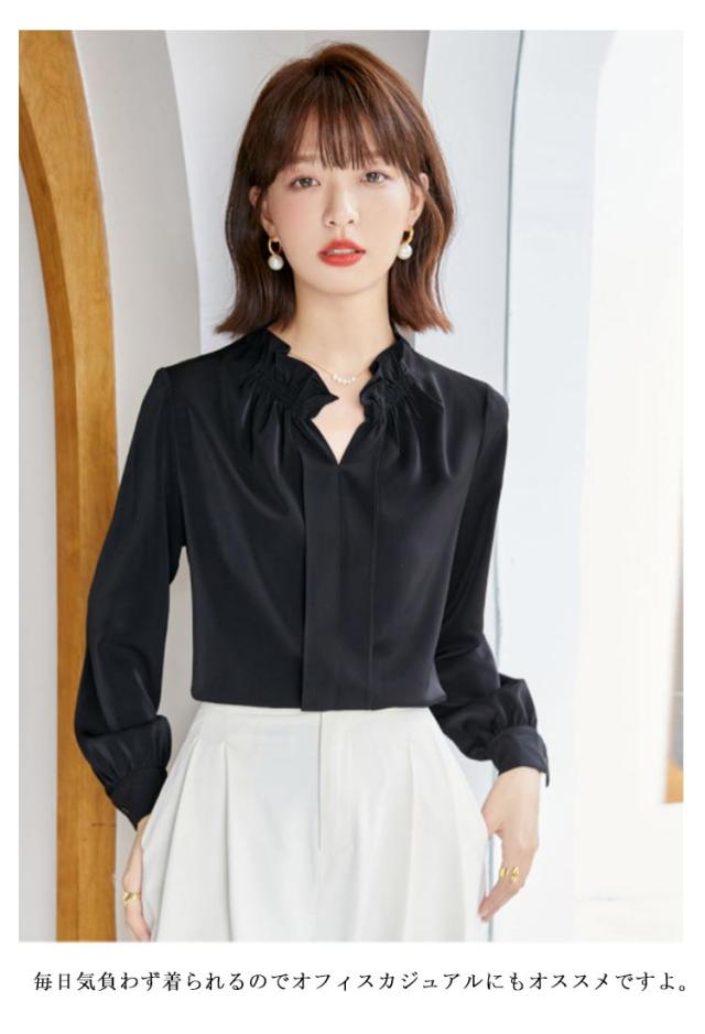 フォーマル レディース レース袖 フリルネック ブラウス トップス オフィス フリル襟 ハイネック 通勤 透けない シャツ スーツ インナー 華やか 光沢感 ギャザー カジュアル シフォン 春夏秋 ゆったり 仕事 おしゃれ トップス 大きいサイズ 20代30代40代50代
