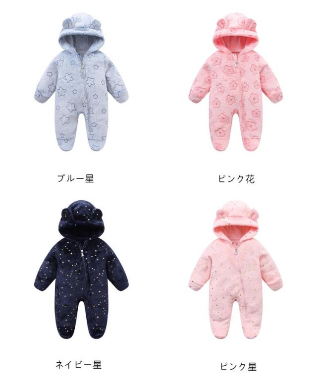 ロンパース ベビー フード付き カバーオール 冬 長袖 裏ボア アウター ジャンプスーツ ベビージャンプスーツ 着ぐるみ ベビー服 子供服 キッズ 防寒 女の子 男の子 プレゼント 出産祝い 赤ちゃん 着ぐるみ ボア 秋冬 あったか かわいい 服 59 66 73 80 送料無料