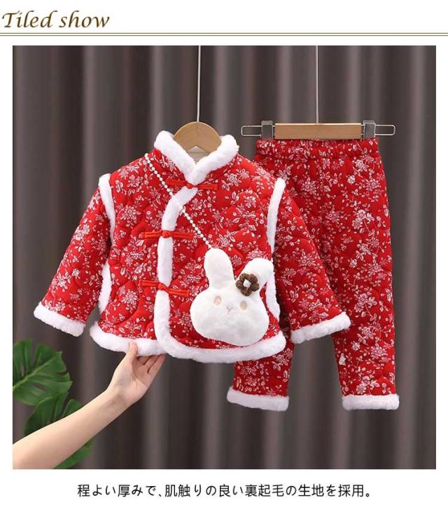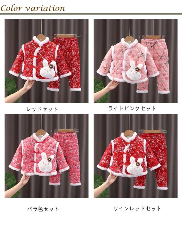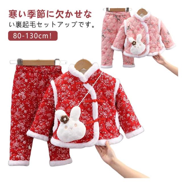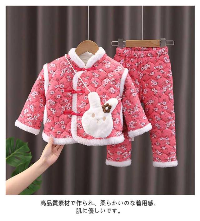 防寒セットアップ トップス ボトムス 男の子 女の子 中国風 中綿ジャケット あったか 厚手 チャイナボタン ロングパンツ 中綿コート 防寒着 韓国風 キッズ 子供服 暴風 無地 長袖 裏起毛 おしゃれ スキーウェア 80 90 100 110 120 130 送料無料