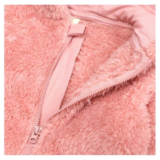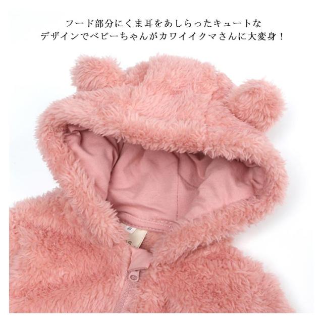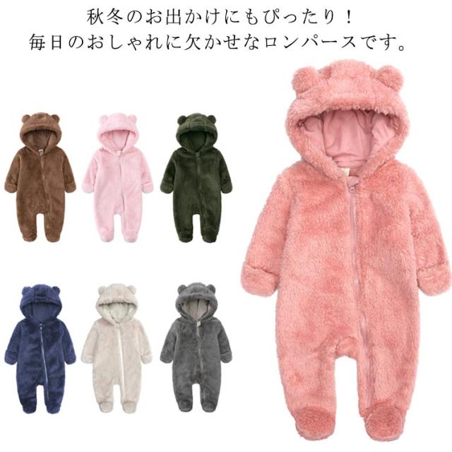 ロンパース 無地 新生児 もこもこ 熊耳付き カバーオール フード付き 厚手 前開き 長袖 あったか ベビー服 赤ちゃん 男の子 女の子 防寒 着ぐるみ ルームウェア プレゼント 秋冬 出産祝い 可愛い