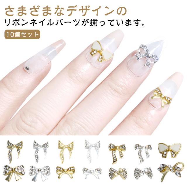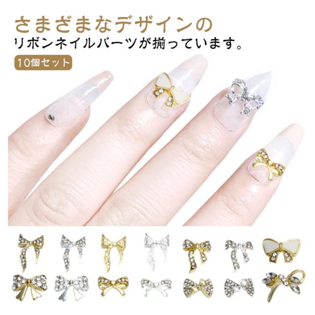 10個セット パーツ リボン シルバー 3D 蝶結び ネイル ゴールド 立体 ネイルパーツ 大きめ ネイルパーツ ネイルビジュー ネイルパーツ 可愛い ネイルジュエリー ネイルアート デコパーツ メタルパーツ ジュエリーパーツ ハンドメイド DIY