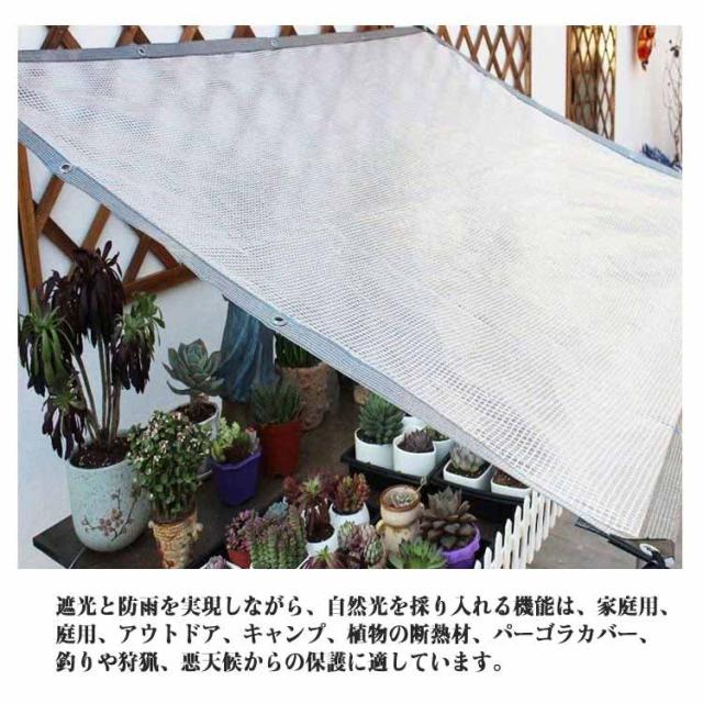 | 防水ビニールシート。2m×2m 2m×3m ボタンホール付き!ロープなどで吊るしたり、バンドで固定したり、いろんな使い方があり、簡単に固定できます。 メッシュ構造は、紫外線を遮りながら自然光を取り込む半透明設計。保温・保湿効果もあり、様々なシーズンで活躍します。 遮光と防雨を実現しながら、自然光を採り入れる機能は、家庭用、庭用、アウトドア、キャンプ、植物の断熱材、パーゴラカバー、釣りや狩猟、悪天候からの保護に適しています。 | |