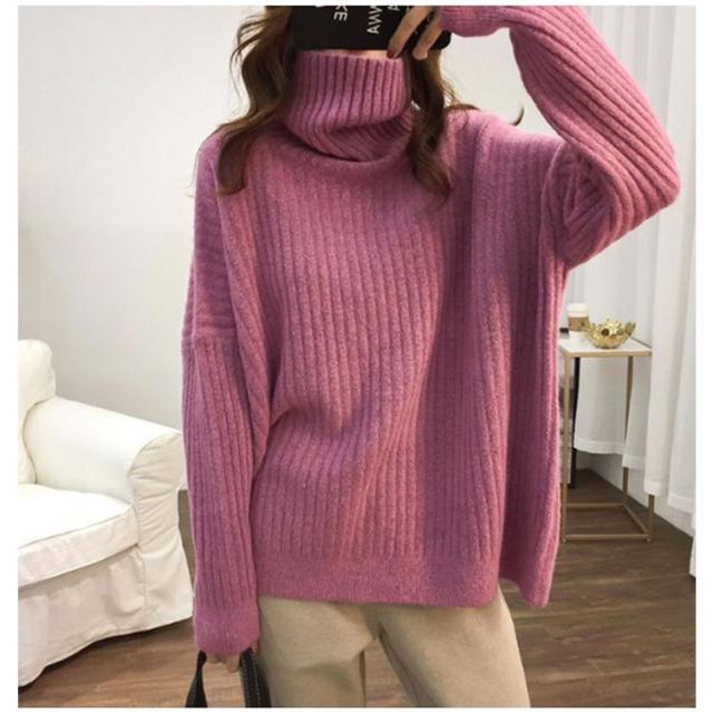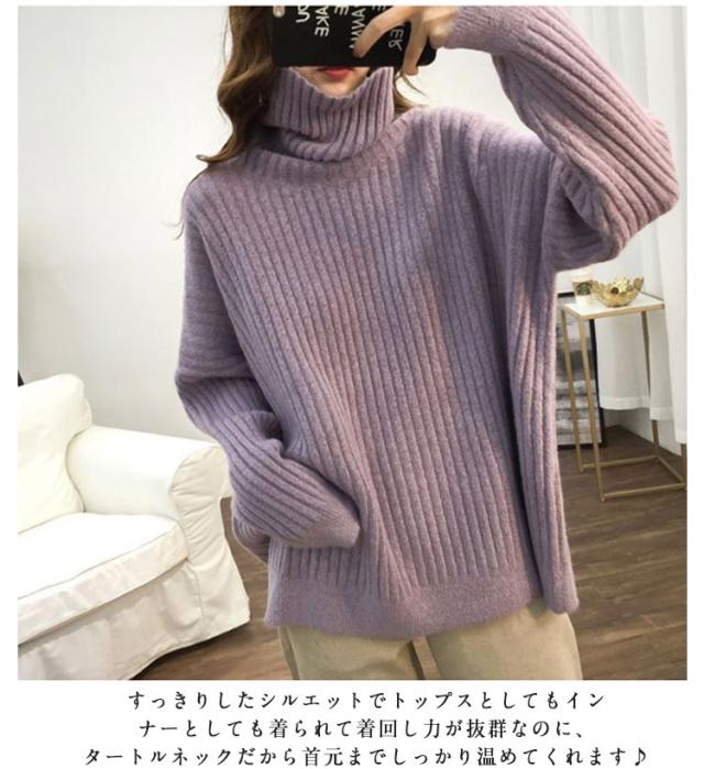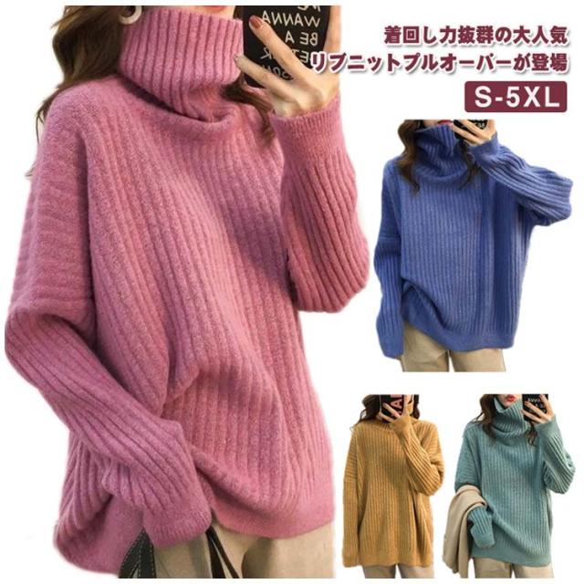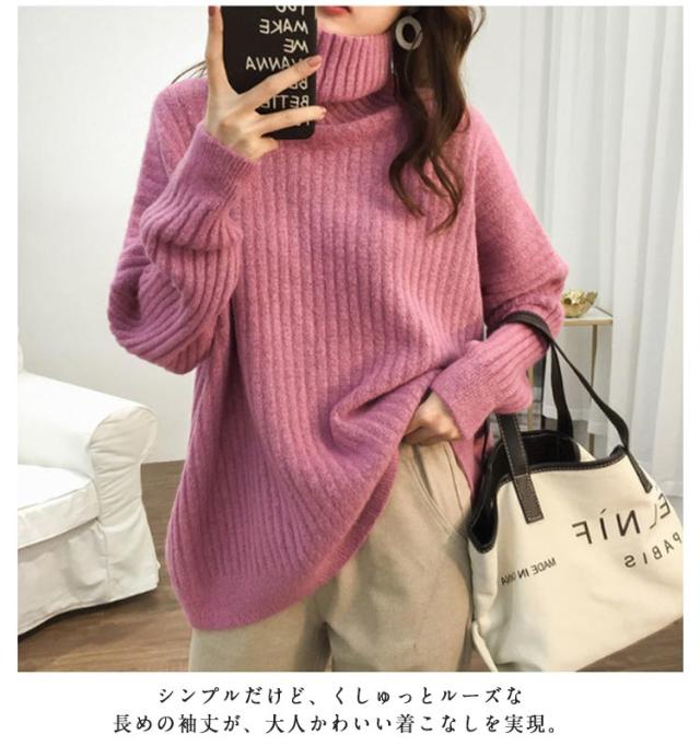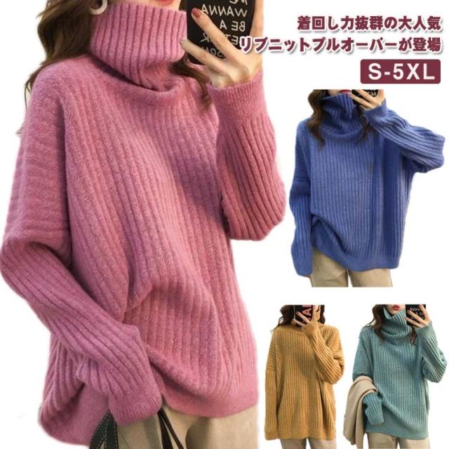 秋冬 体型カバー レディース タートルネック タートルニット トップス きれいめ ニット リブ編み 厚手 ゆったり あったか ニットトップス シンプル リブ ハイネック ニットセーター セーター おしゃれ 大きいサイズ 韓国 30代 40代 50代 大人 カジュアル