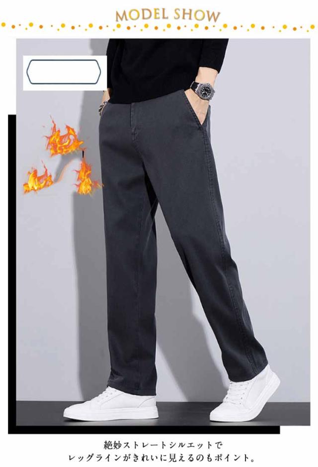 セミワイド ストレートパンツ ゴムウエスト 秋冬 チノパンツ チノパンツ 暖かい 大きいサイズ チノパン メンズ 保温 防寒 厚手 ゆったり 暖パン 裏起毛 ストレート 防寒パンツ カジュアル オフィス ビジカジ 通勤 通学 黒 グレー 無地 シンプル