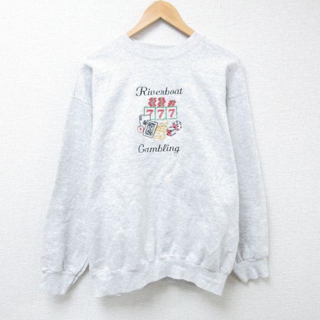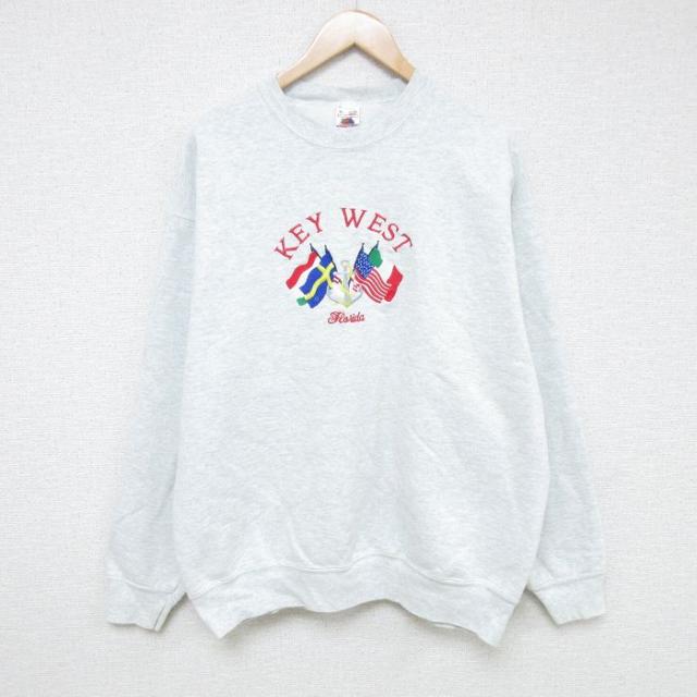 古着 フルーツオブザルーム 長袖 スウェット メンズ 90年代 90s 国旗 イカリ 刺繍 クルーネック USA製 薄グレー 霜降り XLサイ 中古 古着