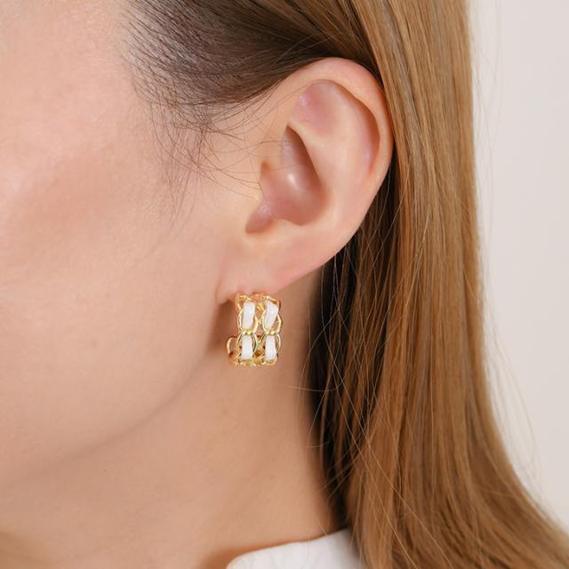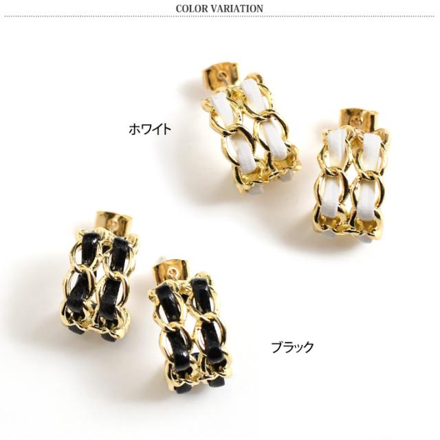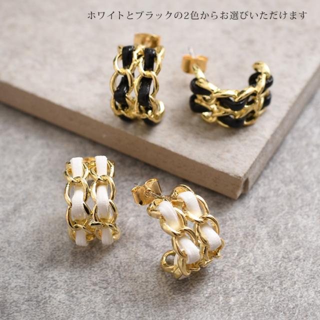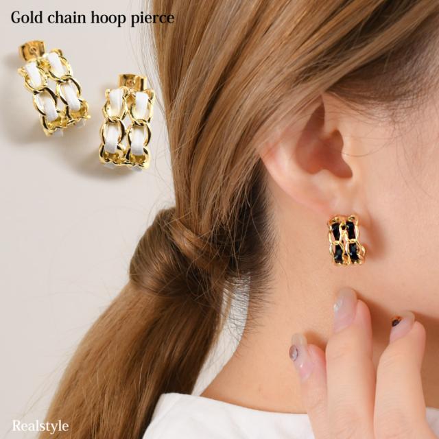 新作 ピアス レディース フープ ゴールド チェーン チタンポスト アクセサリー ギャル 合成皮革 おしゃれ 上品 きれいめ 華やか 低アレルギー