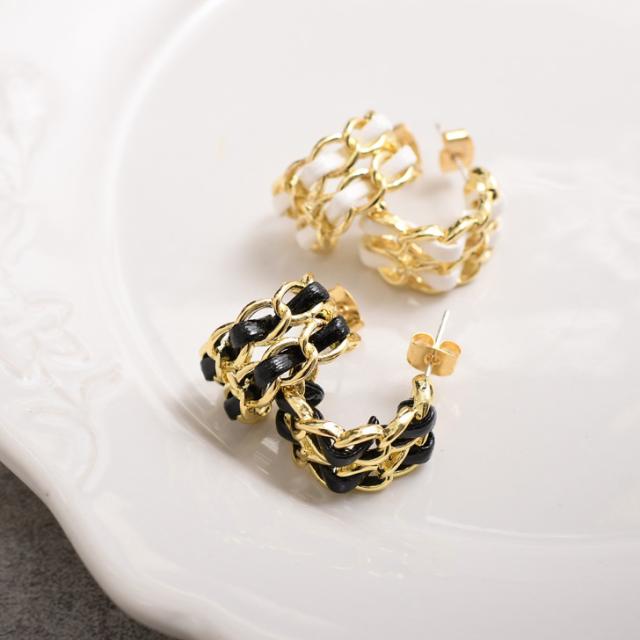 ゴールドチェーンの間にフェイクレザーが編み込まれたデザインの