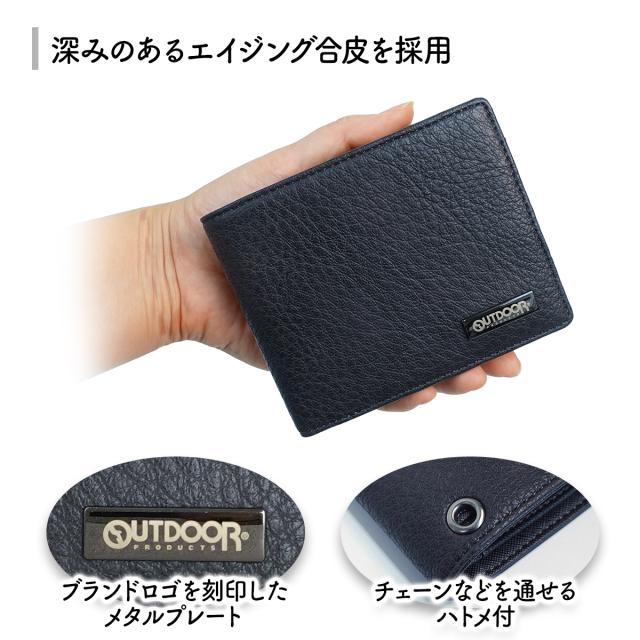 アウトドアプロダクツ 22469101 財布 二つ折り財布 サイフ メンズ レディース メタルプレート エイジング合皮 ウォレット OUTDOOR PRODUCTS