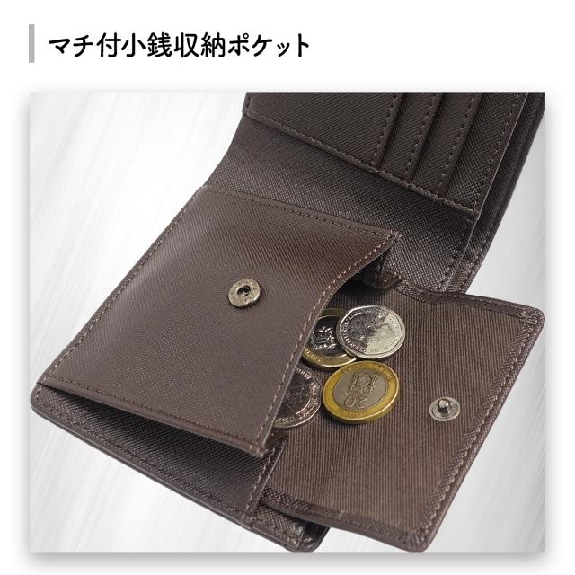 二層に分かれた紙幣収納、マチ付の小銭収納ポケット、カードやレシート類を収納できる多段カードポケットを設けています。
