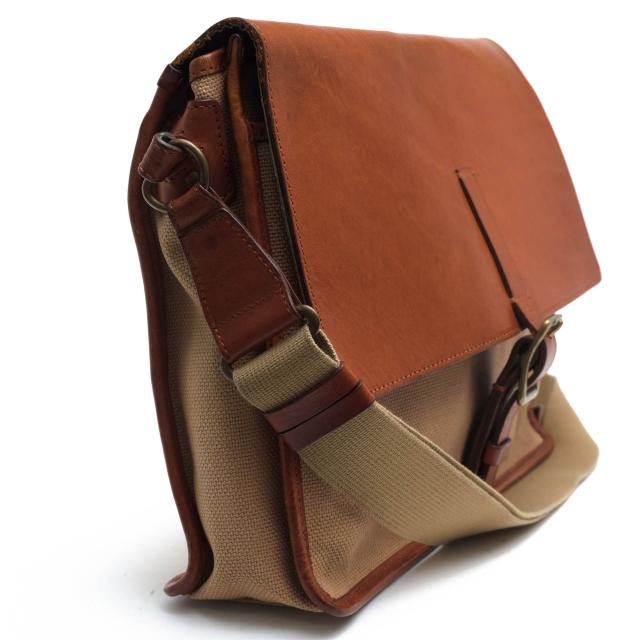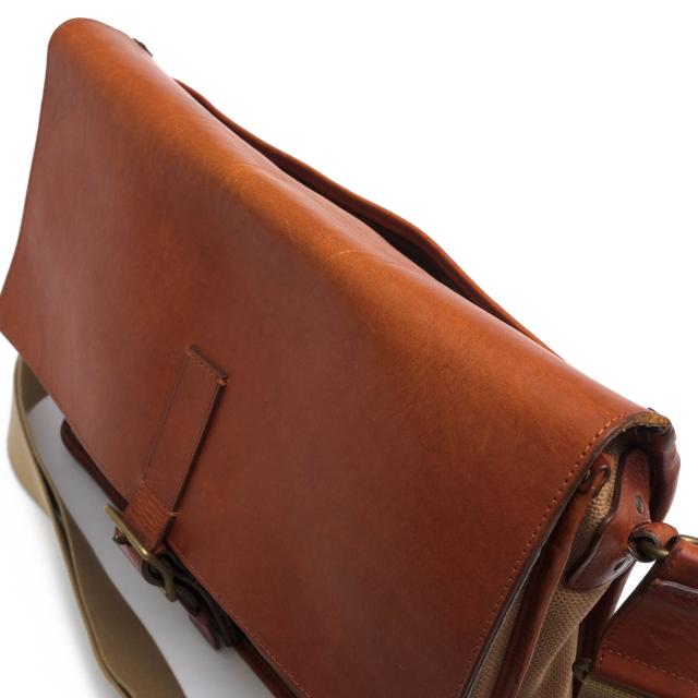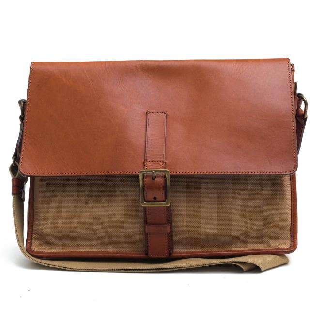 ラフキャンバスとオイル仕上げのヌメ革の組み合わせが、アウトドアな雰囲気と土屋鞄らしい都市的なテイストを両立した土屋鞄のキャラバンシリーズ。フラップタイプのショルダーバッグ。A4サイズの書類が収納可能で、デザインもシンプルなので、流行に左右されません。