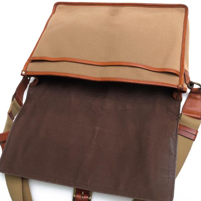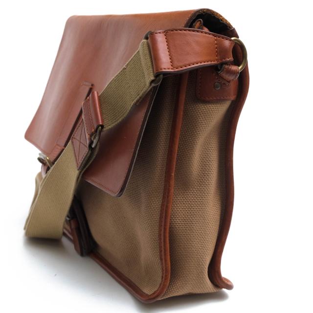 ○土屋鞄 TSUCHIYA-KABAN ラフコットンキャンバス オイル仕上げヌメ革 牛革 ショルダーバッグ Caravan キャラバン レザーフラップ 中古