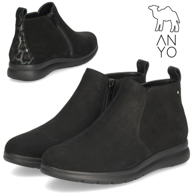 レディース ブーツ ぺたんこ ショート 本革 黒 スニーカーブーツ ANYO エーエヌワイオー 2440063 ブラックコンビ レザー アンクルブーツ カジュアル 歩きやすい