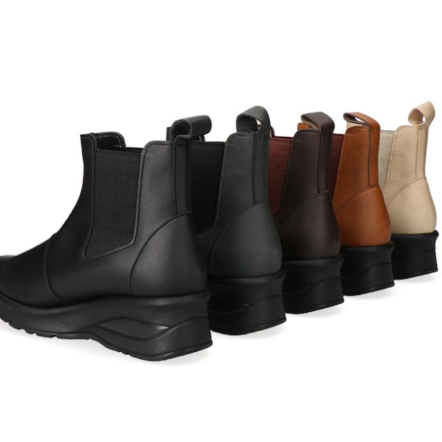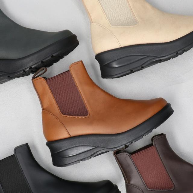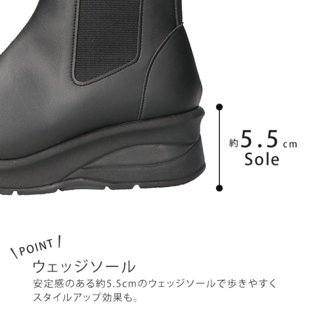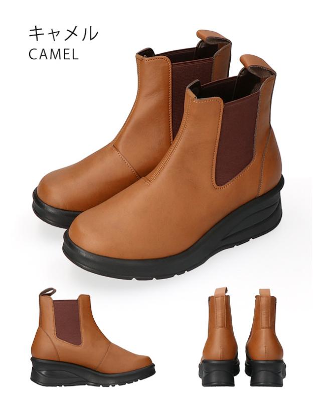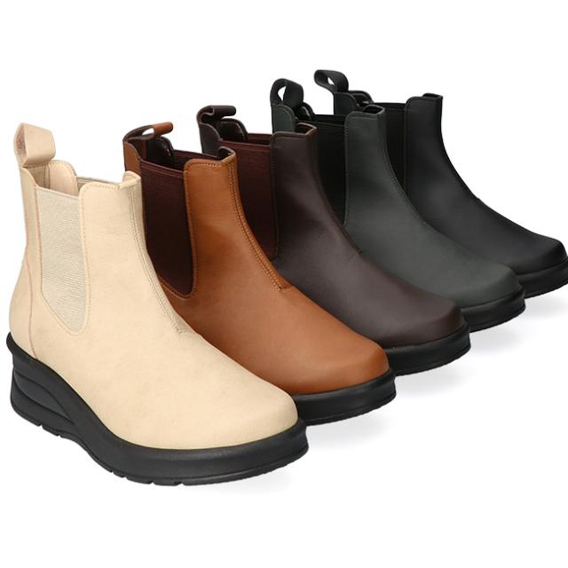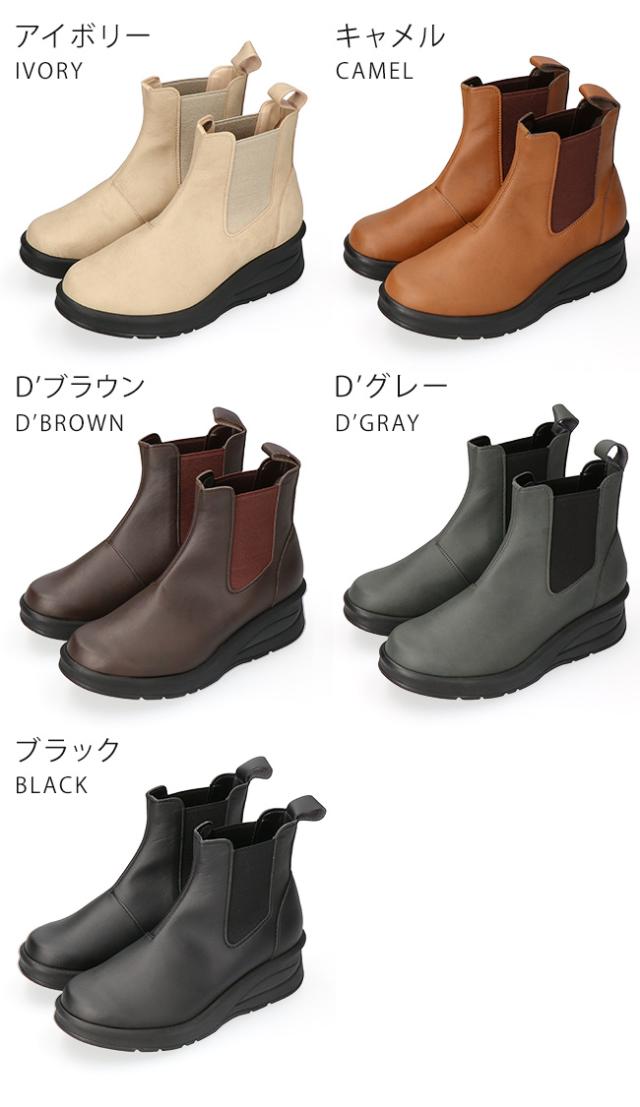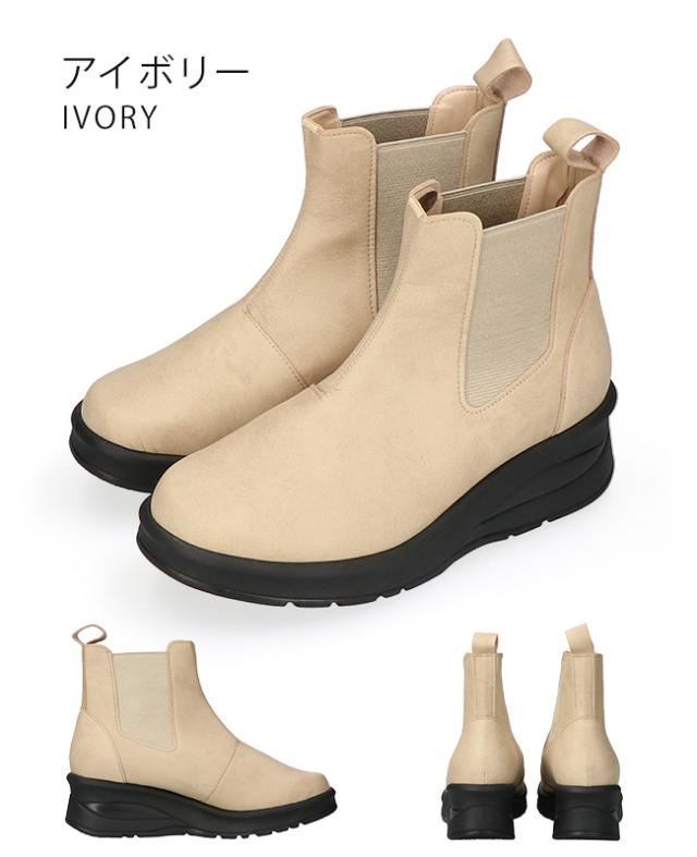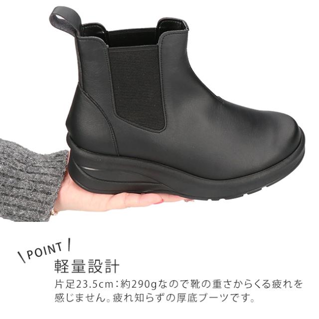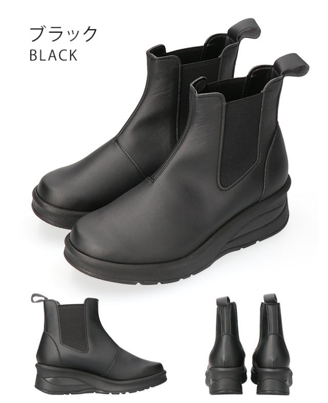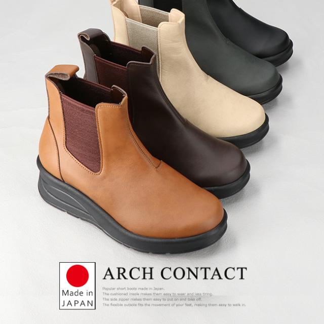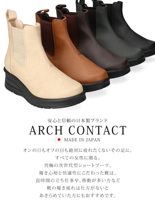 アーチコンタクト ブーツ ショート レディース 歩きやすい 痛くない 厚底 ウェッジソール 軽量 低反発 サイドゴア 黒 おしゃれ かわいい 通勤 日本製 靴 69501