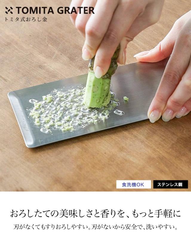 おろし金をどうやってきれいに洗ったらよいか悩んでいた方は多いのではないでしょうか。「トミタ式おろし金」なら、スポンジが引っかからずに隅々まで洗うことができ、食材カスが残ったり、匂いが移ったりすることなく、いつでも衛生的に使えます。匂いの移りにくいステンレス素材で、食材の美味しさを損いません。