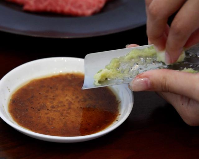 「トミタ式おろし金」は縁が立ち上がったお皿のような形状で、卓上で使用するのに適したデザインです。食卓に置いて、薬味が必要なときに必要な量だけおろしたい、というときにもぴったり。 おろしたての香りを味わいたいわさびやしょうが、水分が出やすい大根など、食卓で、サッとおろしてお楽しみいただけます。