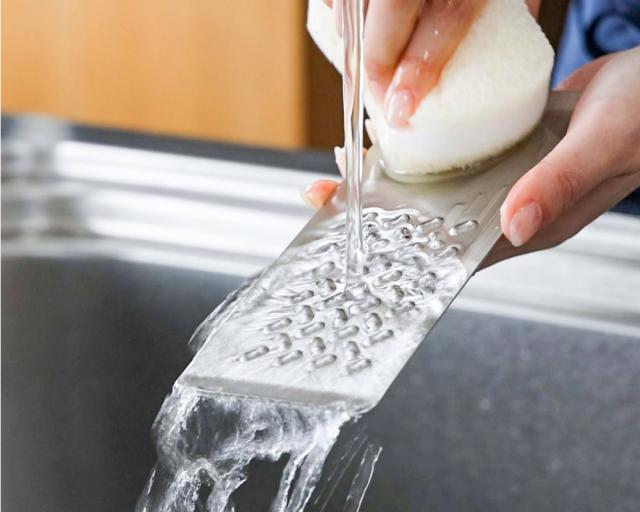 ■「トミタ式おろし金」なら、スポンジが引っかからずに隅々まで洗うことができ、食材カスが残ったり、匂いが移ったりすることなく、いつでも衛生的に使えます。