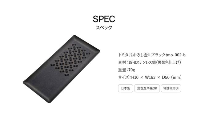 トミタ式おろし金 ブラック tmo-001-b 送料無料 メール便 刃がないおろし金 おろし器 すりおろし器 大根おろし 薬味 生姜 長芋 とろろ にんにく チーズ 食洗機対応 ステンレス製 金属製 新潟県 燕三条 日本製