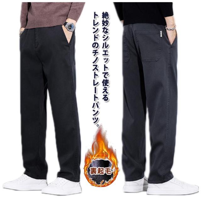 チノパンツ ゴムウエスト 裏起毛 暖パン カジュアルパンツ チノパンツ 防寒 チノパン 秋冬 暖かい 保温 厚手 ストレート ゆったり カジュアル 防寒パンツ ストレートパンツ 大きいサイズ セミワイド オフィス ビジカジ 通勤 通学 黒 グレー 無地 シンプル
