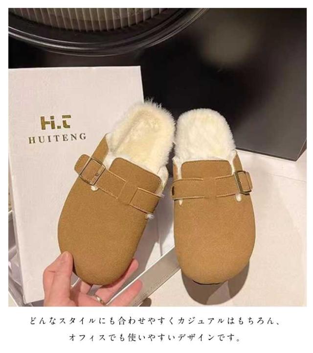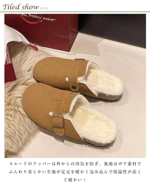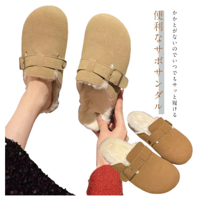靴 シューズ ボア付き ファー あったか サンダル シンプル 仕事履き 裏ボア 冬用 サボ スウェード サボサンダル レディース ぺたんこ オフィス 裏起毛 防寒 オフィス カジュアル かかとなし サボサンダル スリッポン クロッグ スリッパ