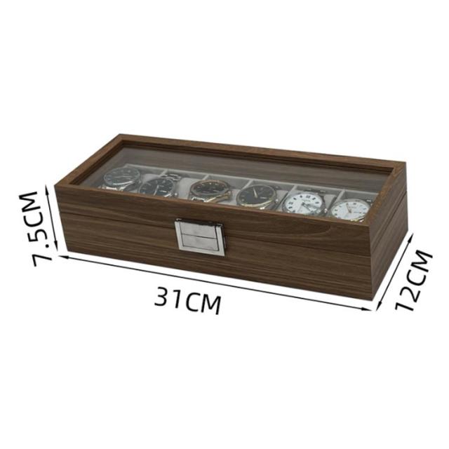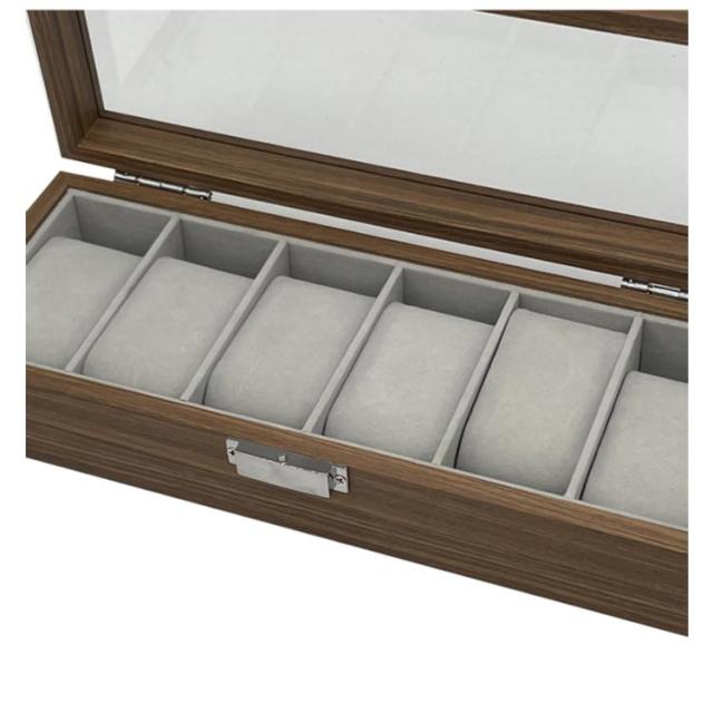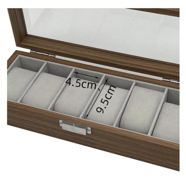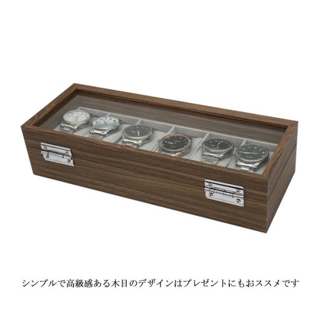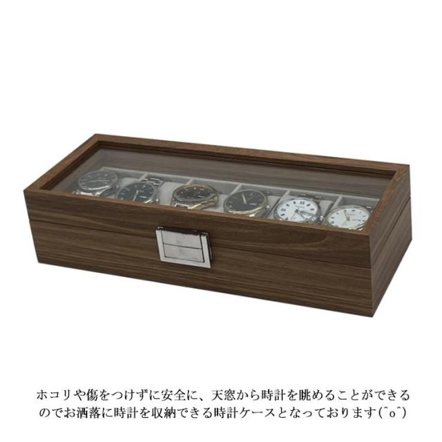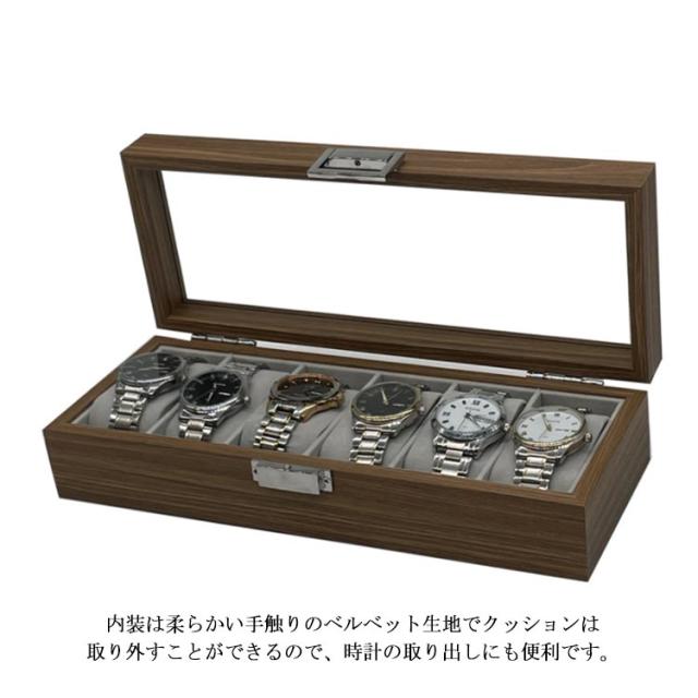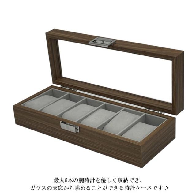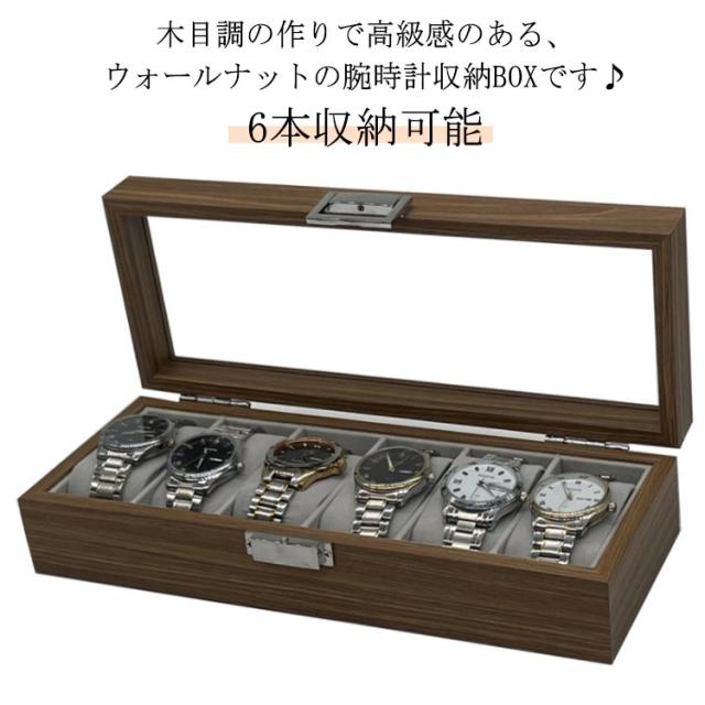 | 木目調の作りで高級感のある、ウォールナットの腕時計収納BOXです♪ 最大6本の腕時計を優しく収納でき、ガラスの天窓から眺めることができる時計ケースです♪ ホコリや傷をつけずに安全に、天窓から時計を眺めることができるのでお洒落に時計を収納できる時計ケースとなっております(^o^) 内装は柔らかい手触りのベルベット生地でクッションは取り外すことができるので、時計の取り出しにも便利です。 シンプルで高級感ある木目のデザインはプレゼントにもおススメです | |