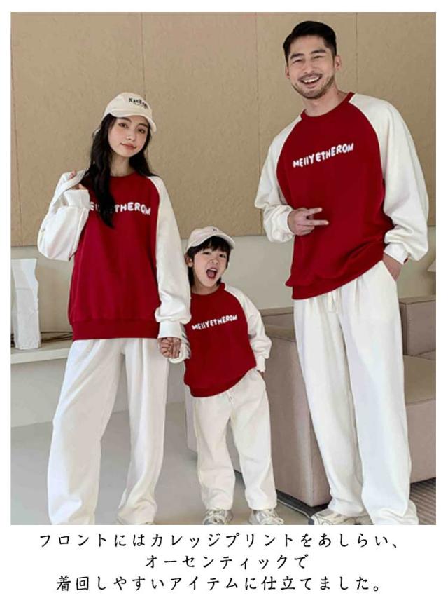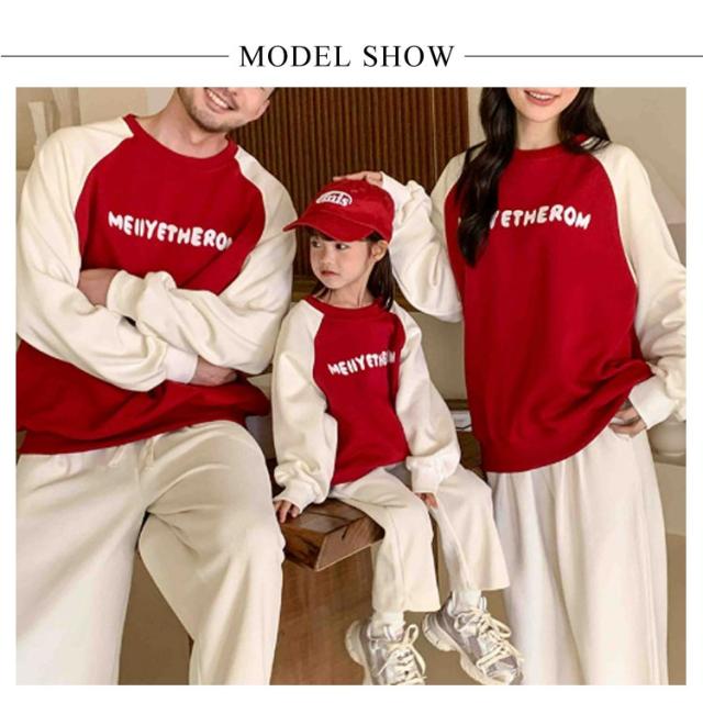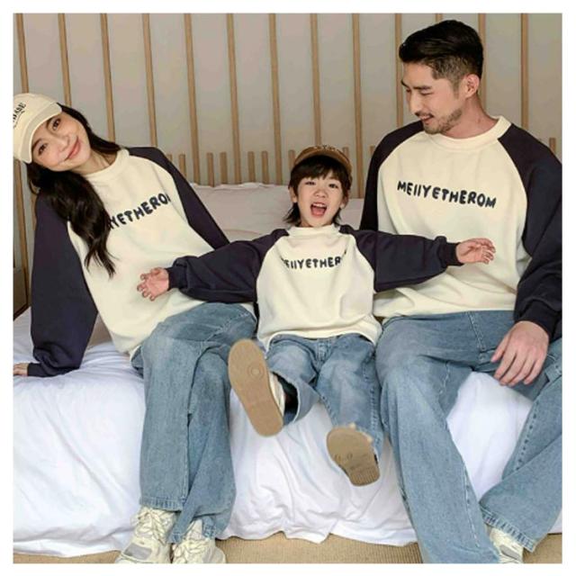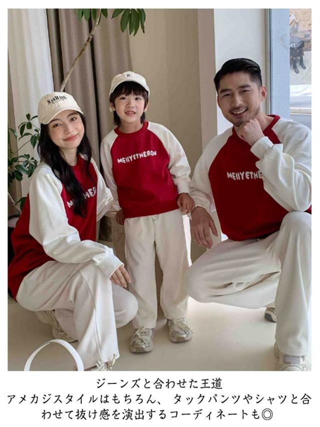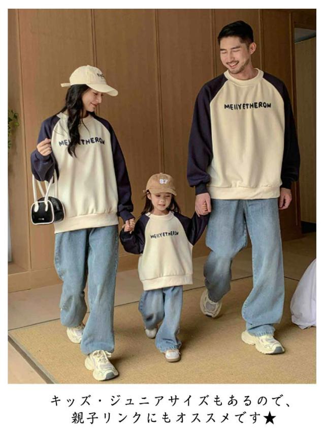 ペアルック 長袖 トップス 親子 トレーナー 裏起毛/起毛無し 親子 切り替え 可愛い おそろい 大きいサイズ スウェット ペアパーカー プルオーバー 選べる2タイプ ドロップショルダー ベビー クルーネック 親子 ペア 服 男の子 女の子 パパ