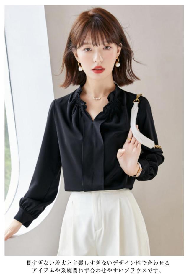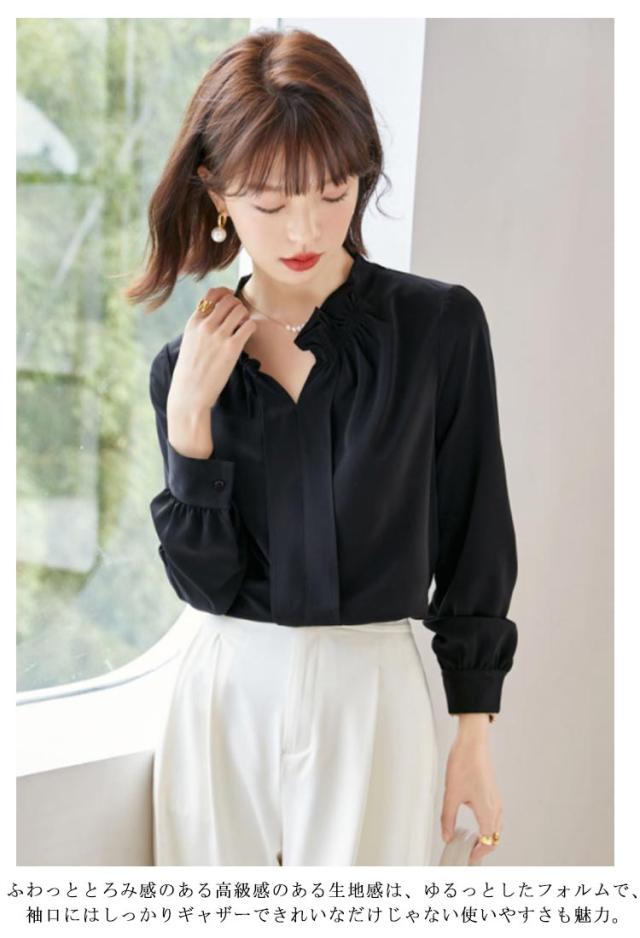 ギャザー オフィス フリルネック フリル襟 トップス シャツ 華やか スーツ インナー レース袖 ハイネック フォーマル 透けない ブラウス 仕事着 光沢感 ゆったり カジュアル シフォン 春夏秋 通勤 仕事 おしゃれ トップス 大きいサイズ 20代30代40代50代