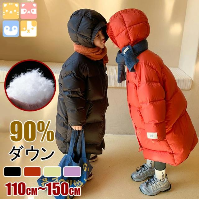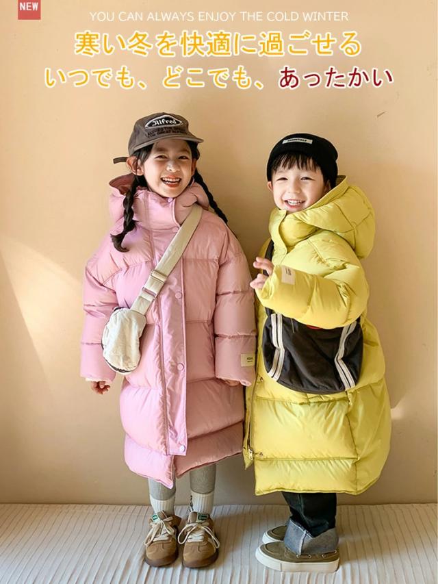 【90%ダウン/男女兼用/暖かい】110cm-160cm キッズ ジャンパー ジャケット コート ライトダウン 子供服 ベビー ロング 冬服 防寒 女の子 男の子 ジュニア ふわふわ もこもこ オーバー 冬 アウター 厚手 子ども フード付き 暖かい 通園 通学 110 120 130 140 150 160